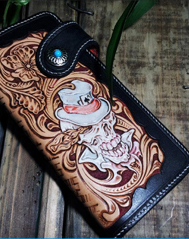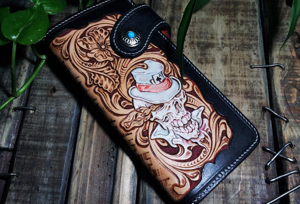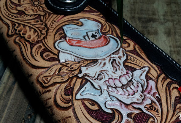 Design: Black Carved Tooled ?Skull?Leather Wallet