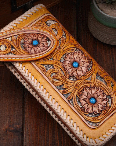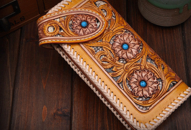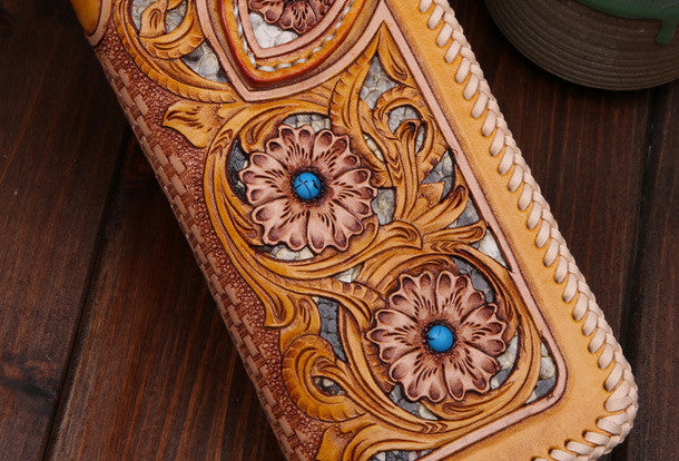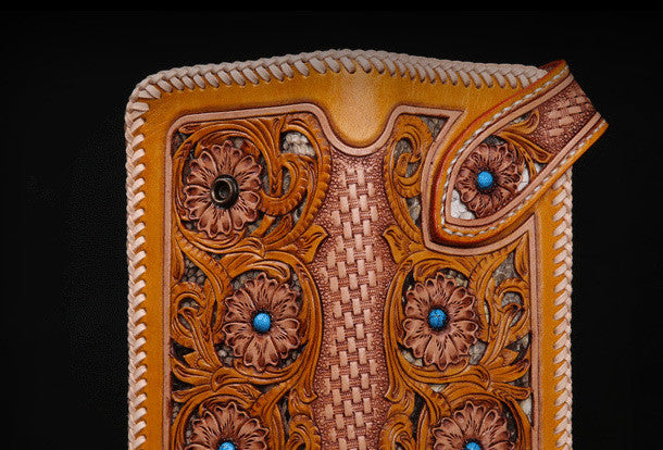 Design: Black Carved Tooled Floral?Biker Leather Wallet
