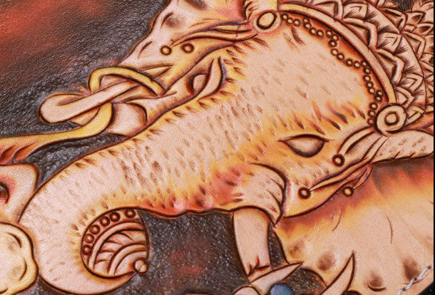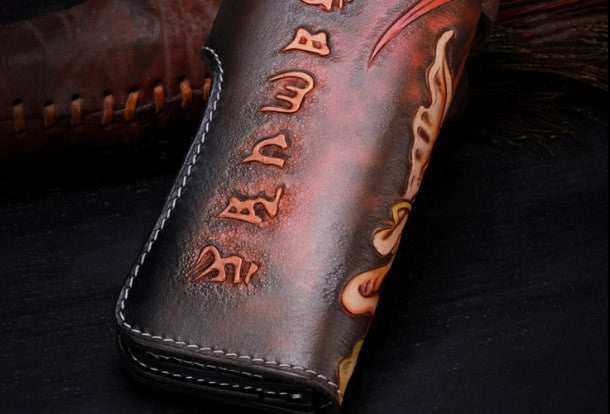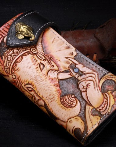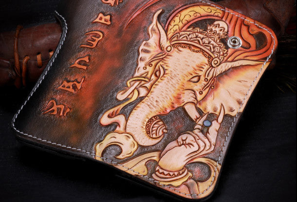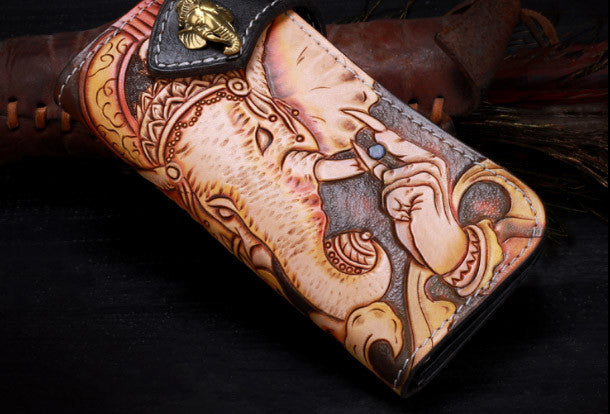 Design: Brown Carved Ganesha?Biker Leather Wallet