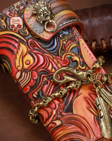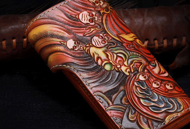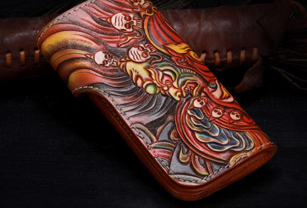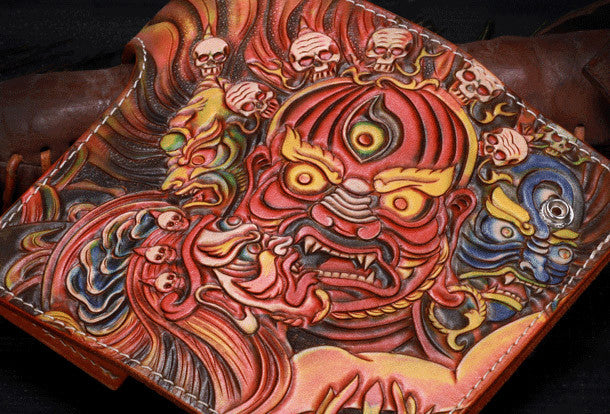 Design: Brown Carved God Mahakala Biker Leather Wallet