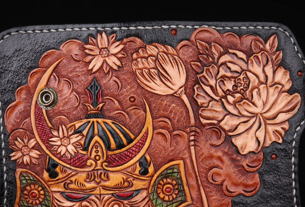 Design: Black Carved Tooled Wolf Biker Leather Wallet