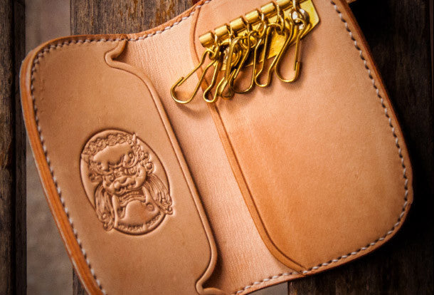 Design:?Beige billfold key biker wallet?