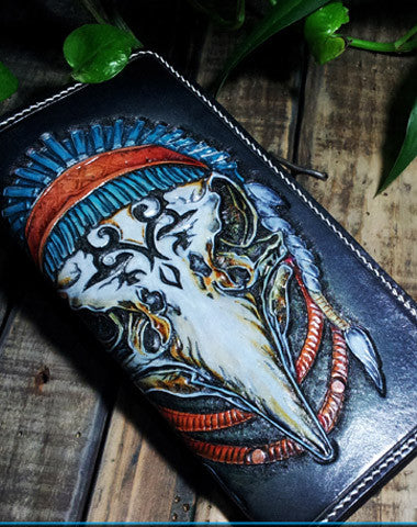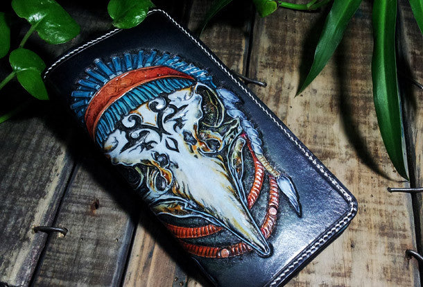 Handmade leather Biker chain wallet Indian Eagle trucker wallet men Tooled wallet