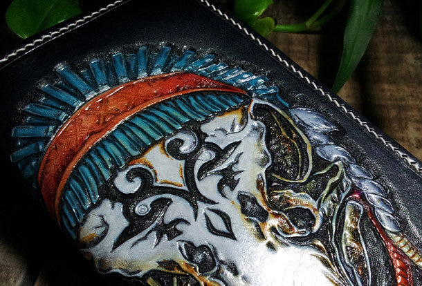 Design: Black Carved Tooled Indian Eagle Leather Wallet