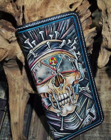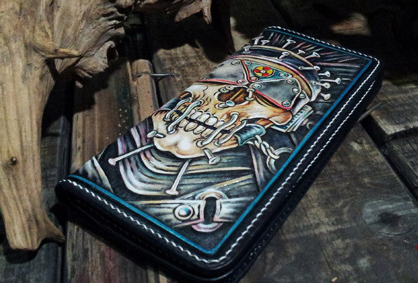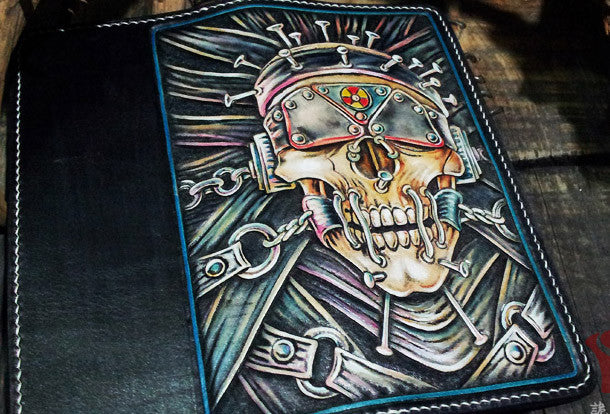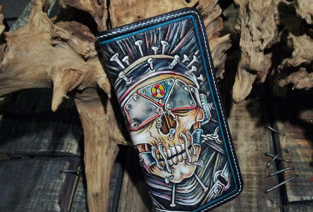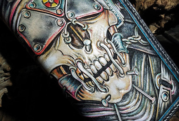 Design: Black Carved Tooled Megadeth?Skull?Leather Wallet