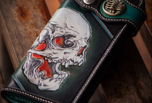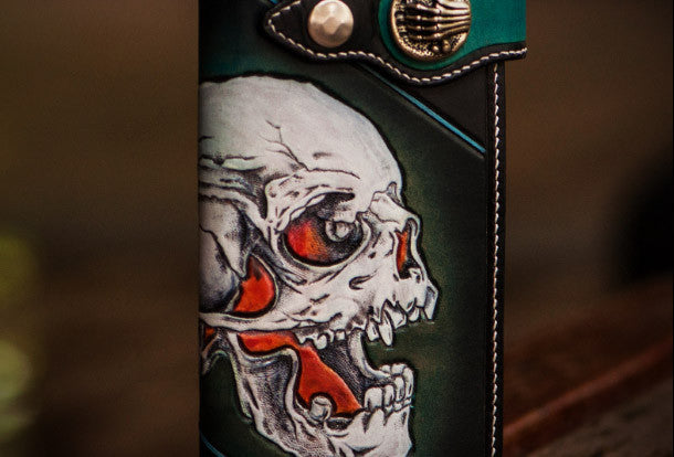 Design: Green?skull? Biker Leather Wallet