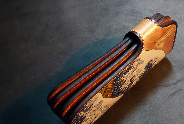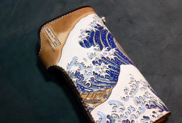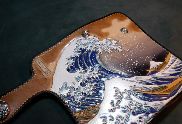 Design: Brown Carved Tooled Biker Leather Wallet