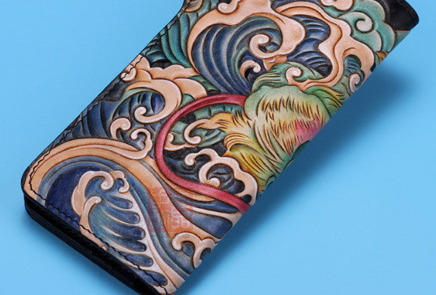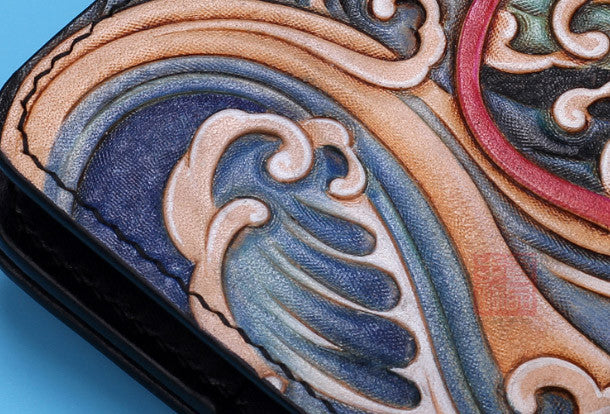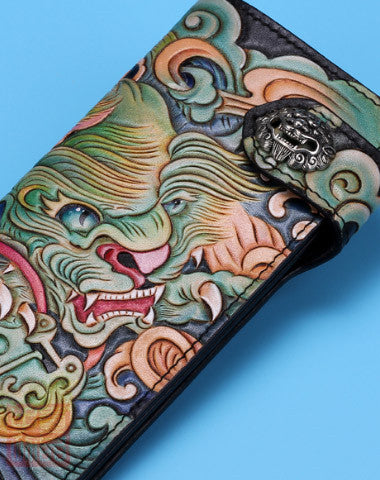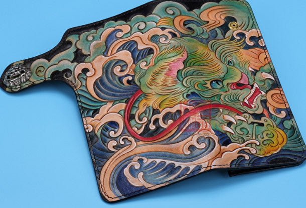 Design: Green Carved Tooled?wild Animal Biker Leather Wallet
