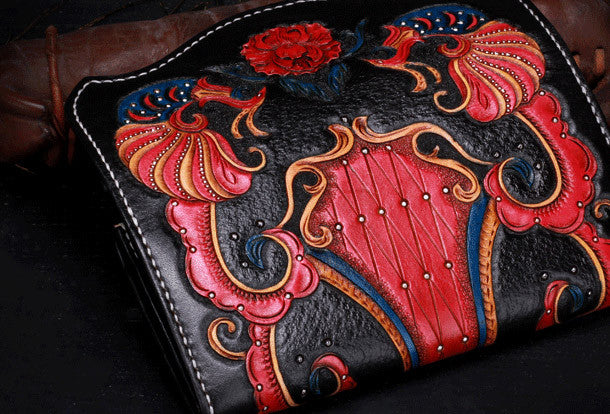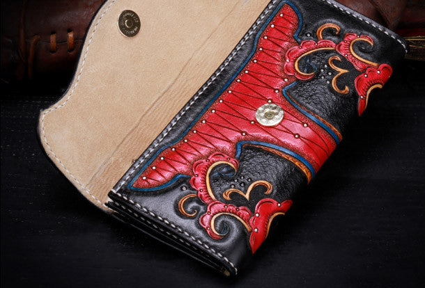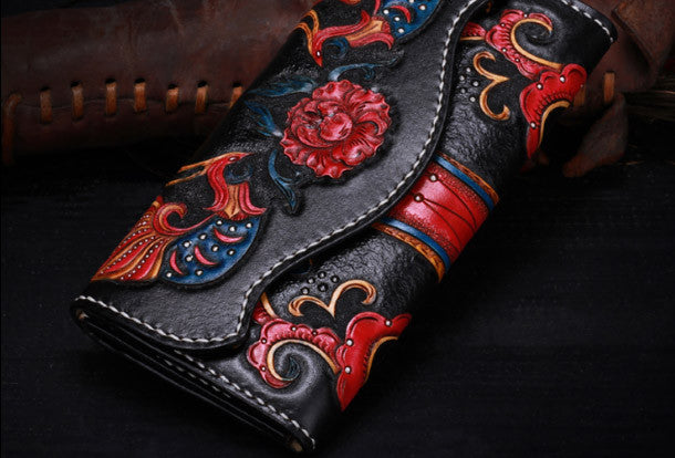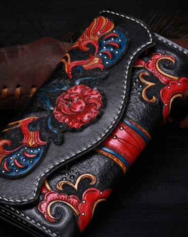 Design: Black?Tooled flowers? phoenix Long Women Clutch Wallet