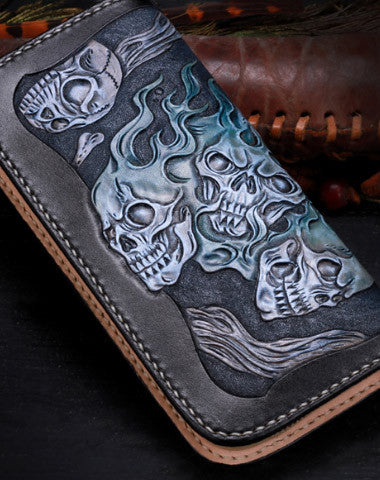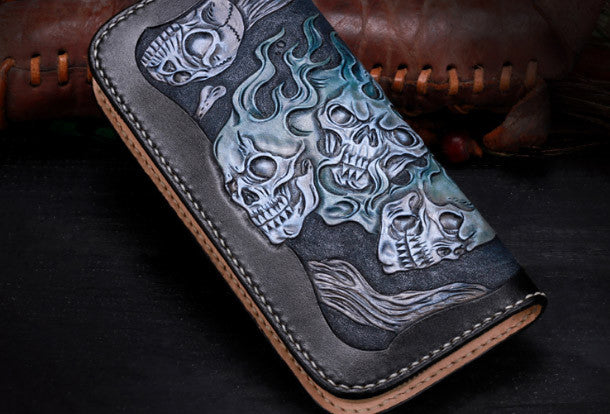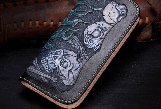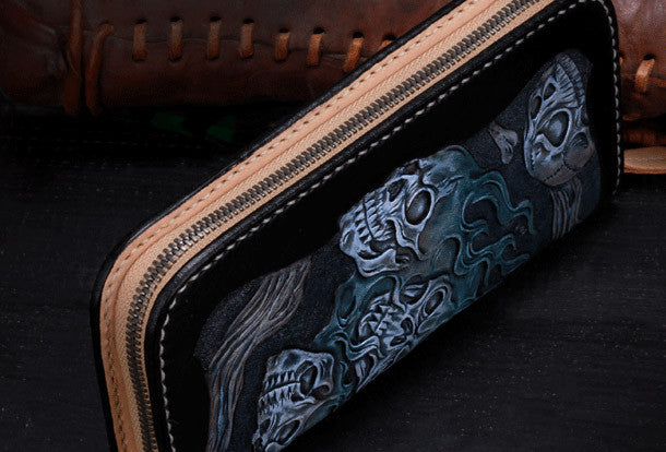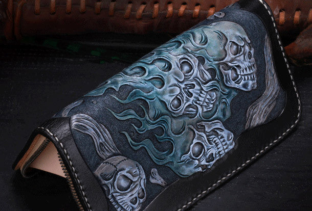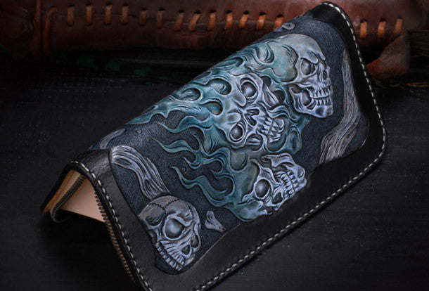 Design: Black?Tooled skull?Long Women Clutch Wallet