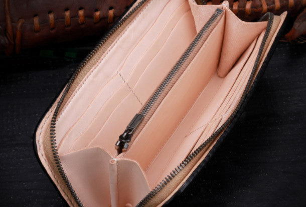 Slots:?2?full size bill slots, 12?card holders, 1 zip?slot