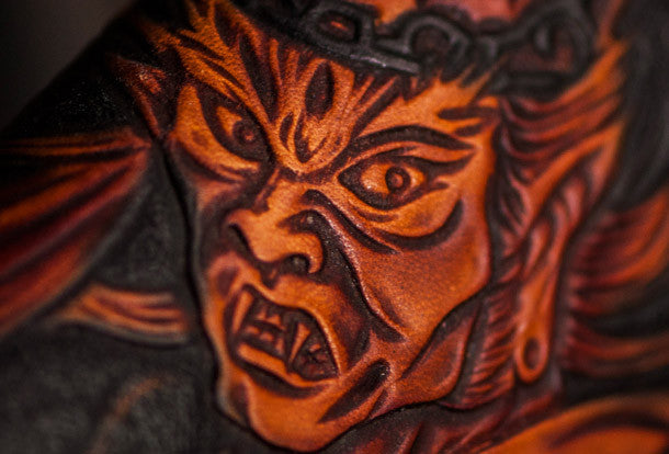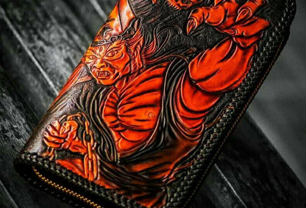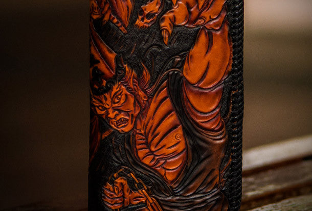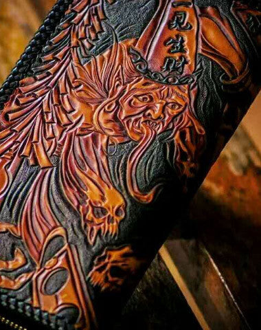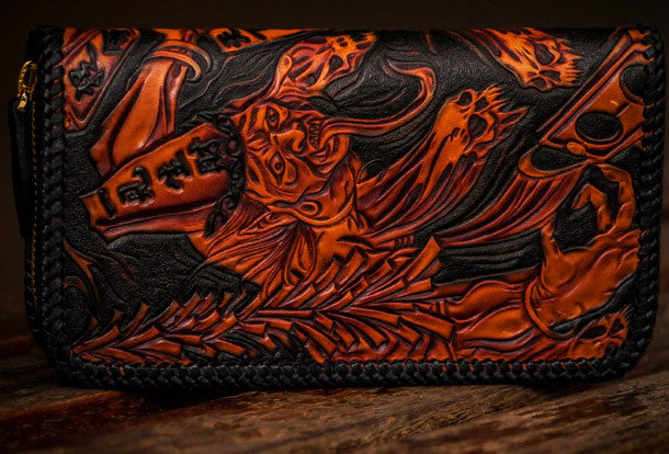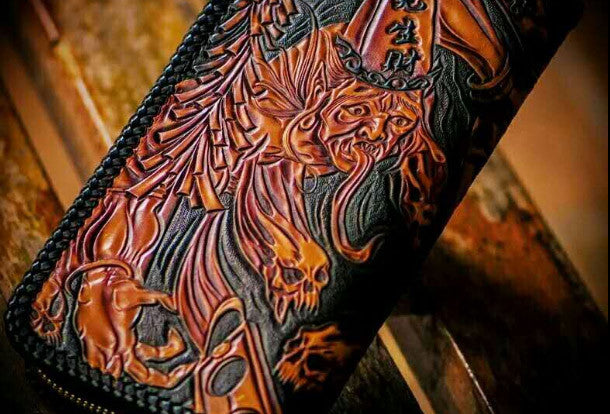Design: Brown Carved Tooled eagle ?biker Clutch zip Leather Wallet