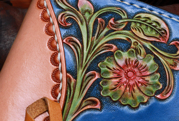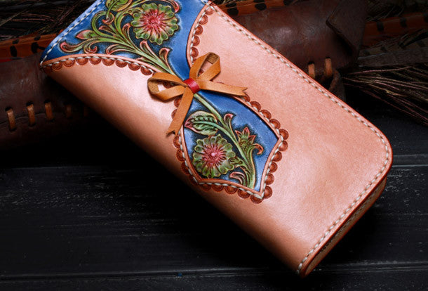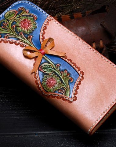 Design: Blue?beige?Tooled flowers?Long Women Clutch Wallet