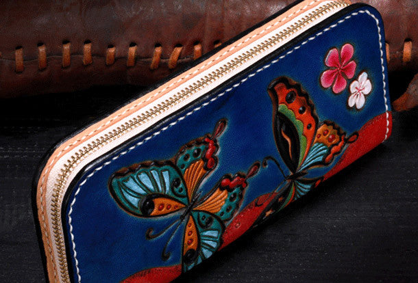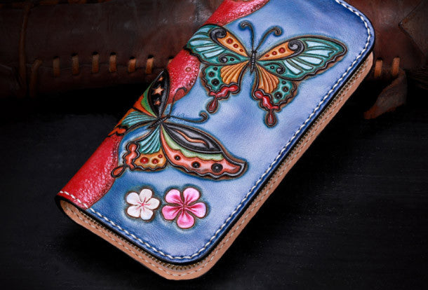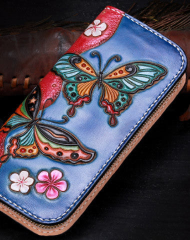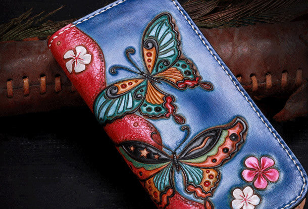 Design: Blue?Tooled? Butterfly Long Women Clutch Wallet