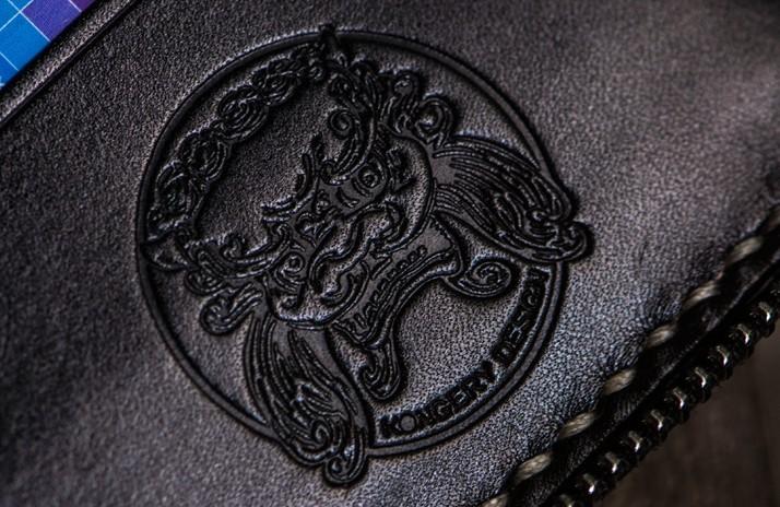 Design: Handmade Leather Boa Skin Tooled Mens billfold Wallet Cool Slim Wallet Biker Wallet for Men