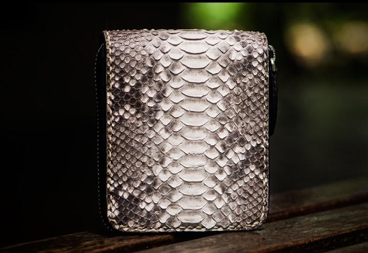 Style: Handmade Leather Boa Skin Tooled Mens billfold Wallet Cool Slim Wallet Biker Wallet for Men
