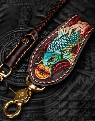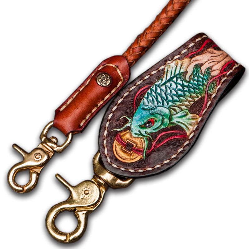 Design: Handmade Leather Braided Biker Trucker Tooled Carp Wallet Chain for Chain Wallet Biker Wallet Trucker Wallet