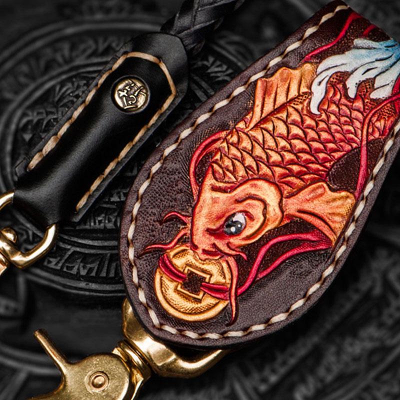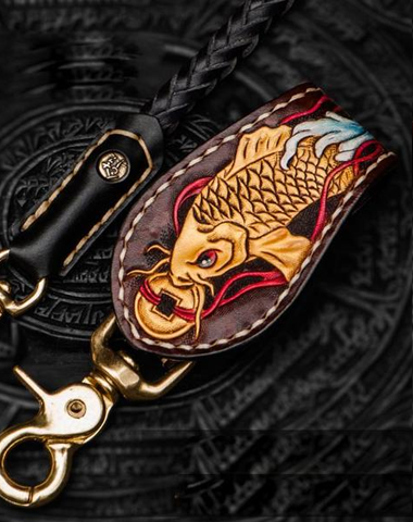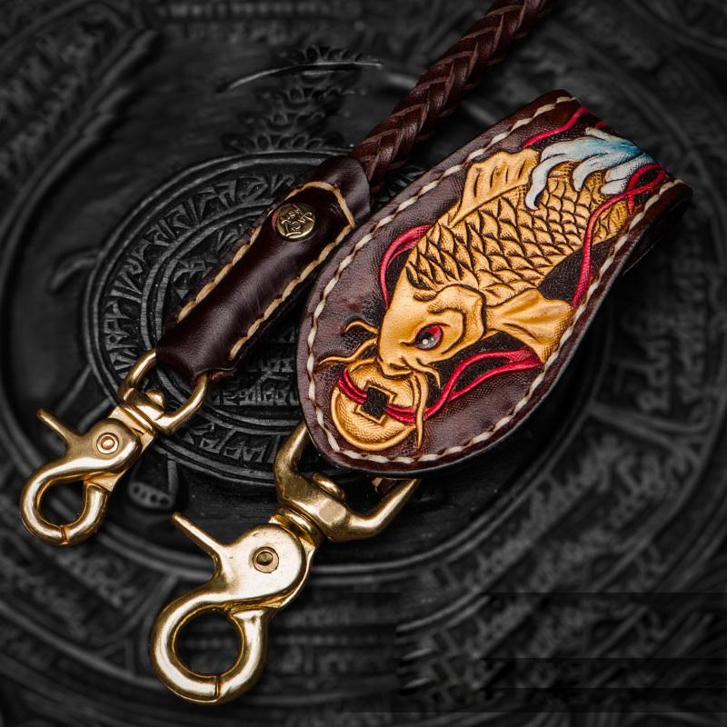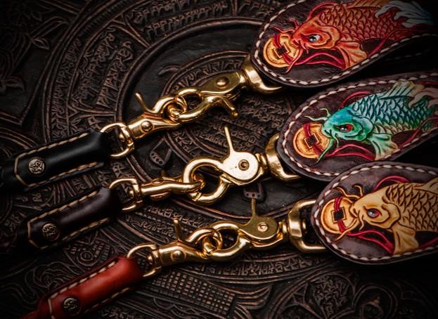 Design: Handmade Leather Braided Biker Trucker Tooled Carp Wallet Chain for Chain Wallet Biker Wallet Trucker Wallet