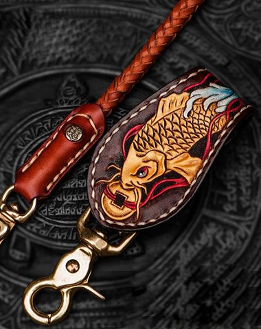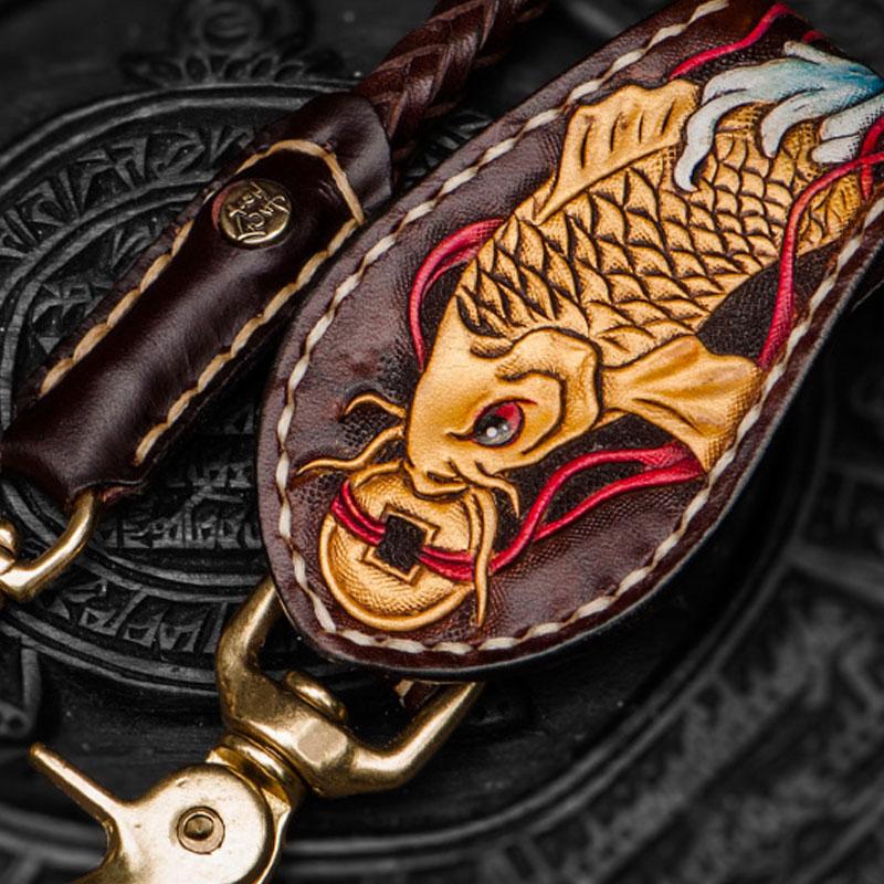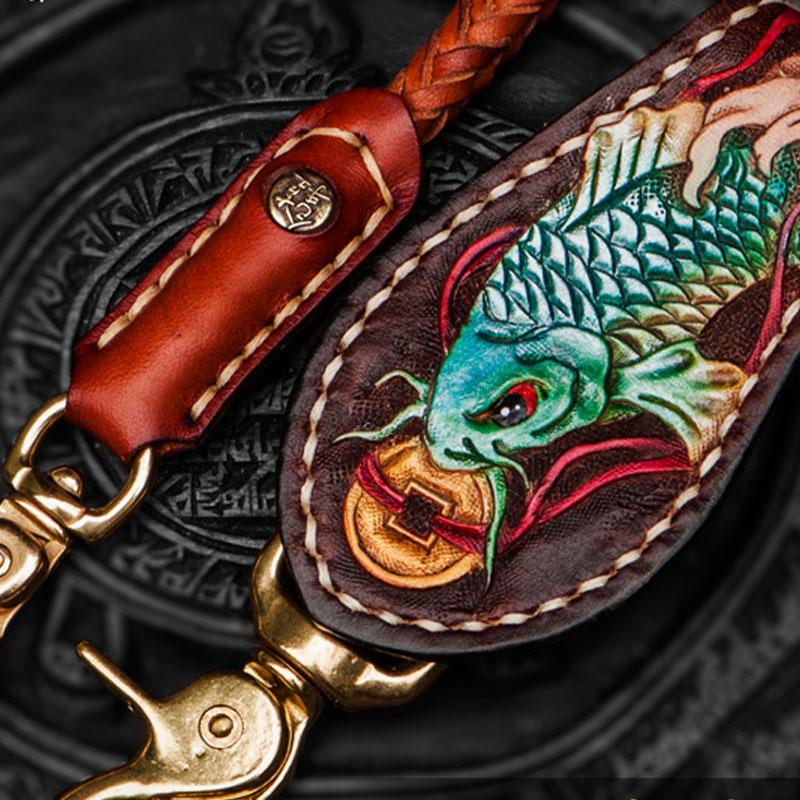 Design: Handmade Leather Braided Biker Trucker Tooled Carp Wallet Chain for Chain Wallet Biker Wallet Trucker Wallet