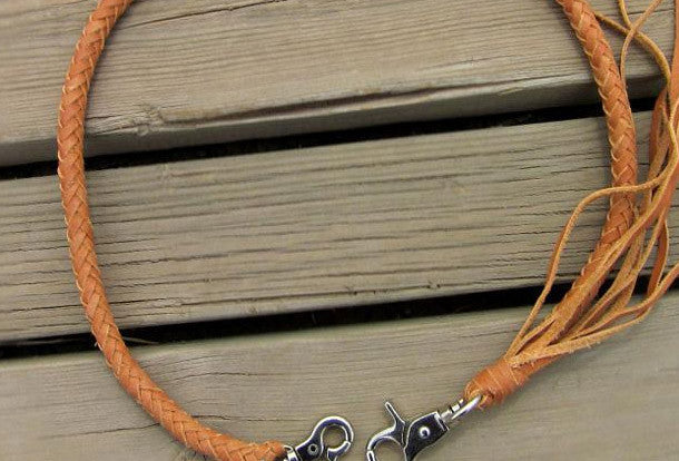 This is handmade natural Italian Vegetable Tanned leather braided Chain with japanese brass belt Clip for wallet/purse/clutch.The chain is 4pc, 8pc,color is beige, brown, black.This chain is about 58 cm long and diameter of about 9 mm.