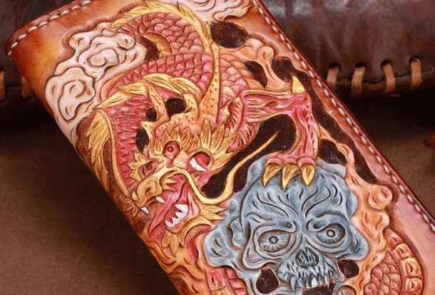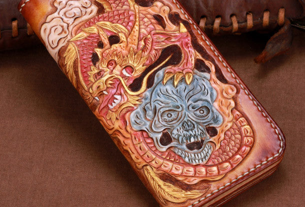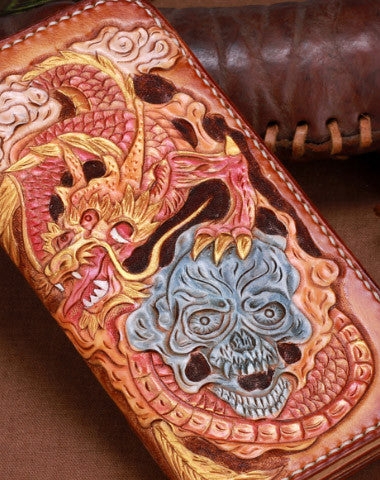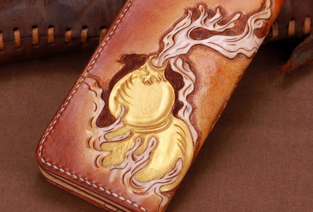 Design: Brown Tooled skull?Long Women Clutch Wallet