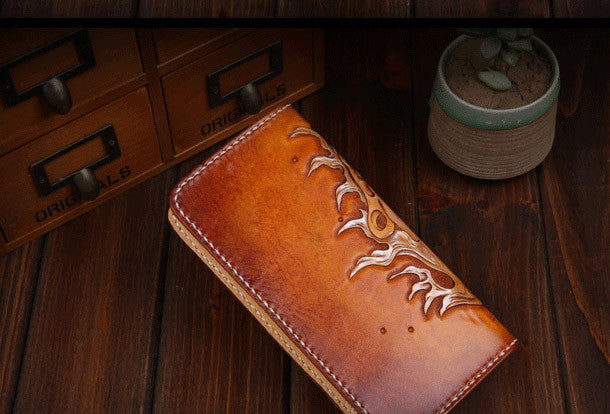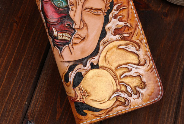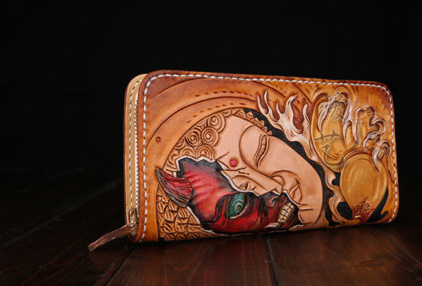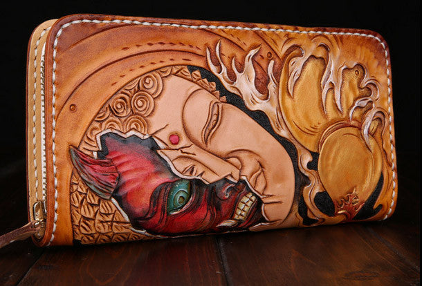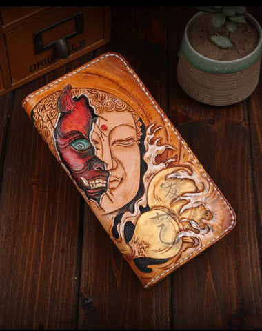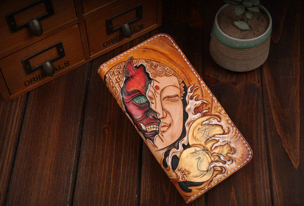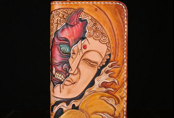 Design: Black Carved Tooled Buddha devil ?Long?Leather Wallet