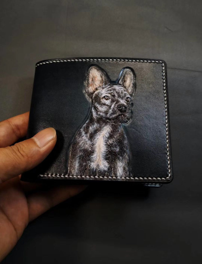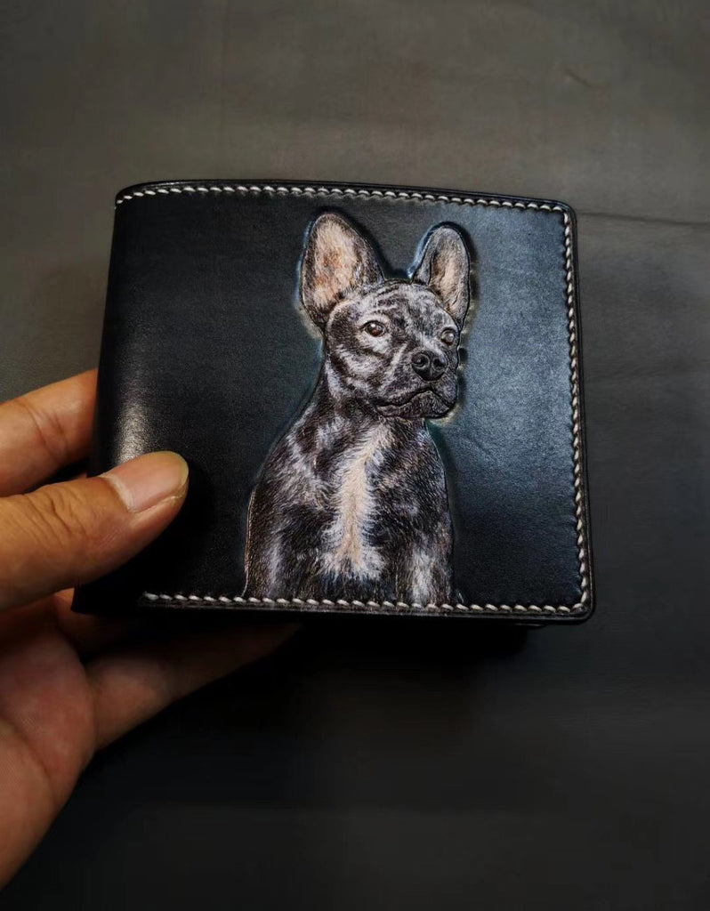 Style: Handmade Mens Leather billfold Wallet Bulldog Dog Tooled Leather Bifold Wallet Slim Wallet for Men