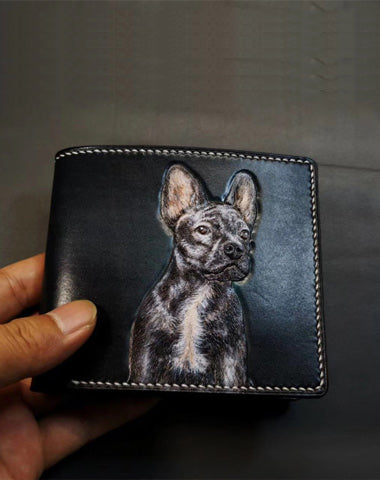 Design: Handmade Mens Leather billfold Wallet Bulldog Dog Tooled Leather Bifold Wallet Slim Wallet for Men