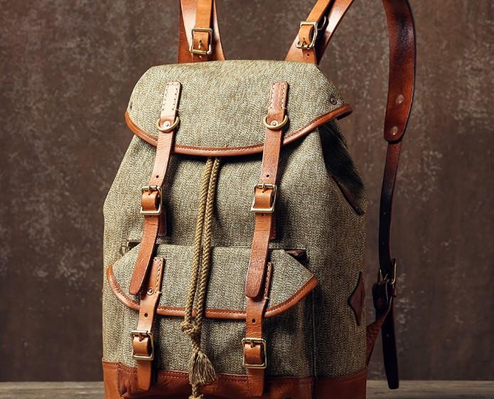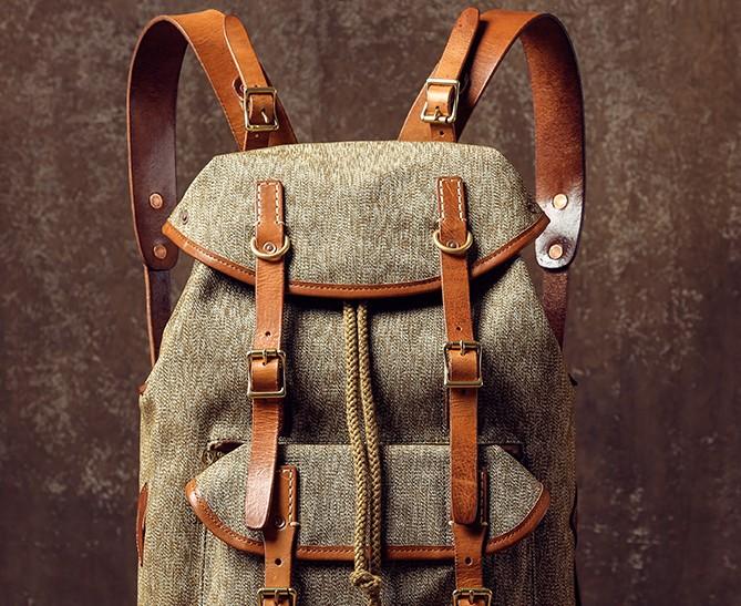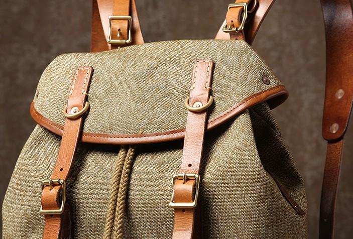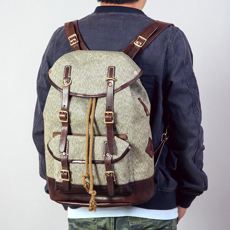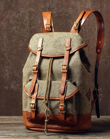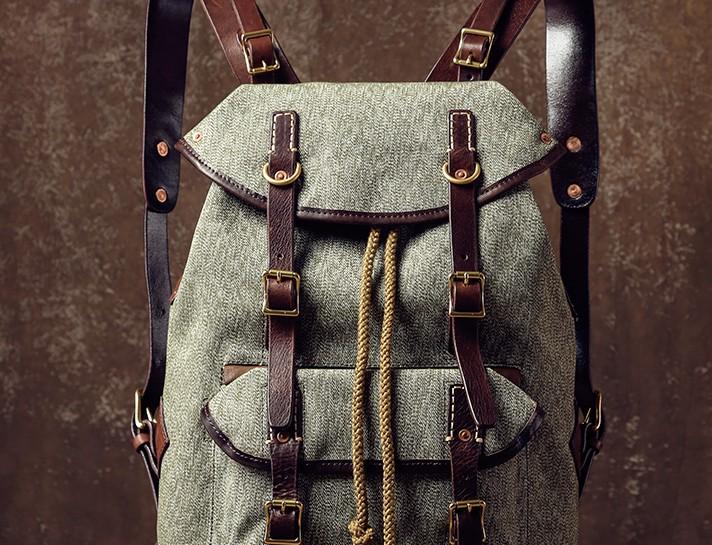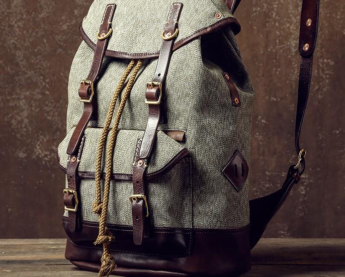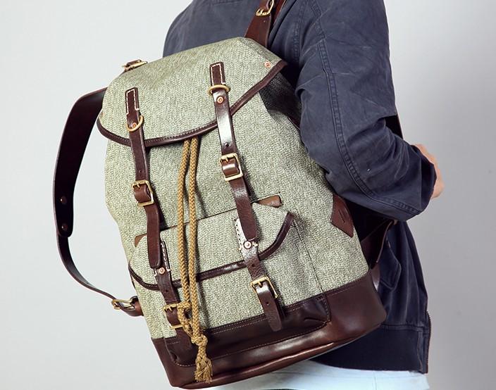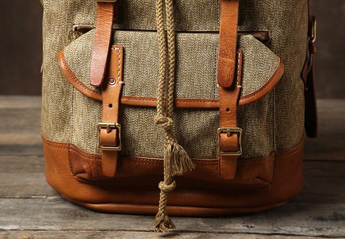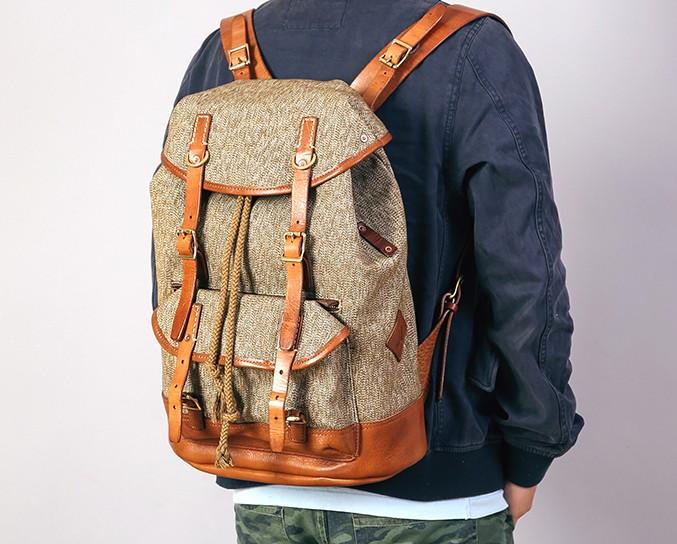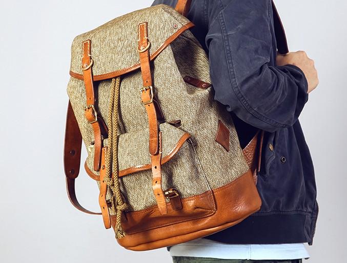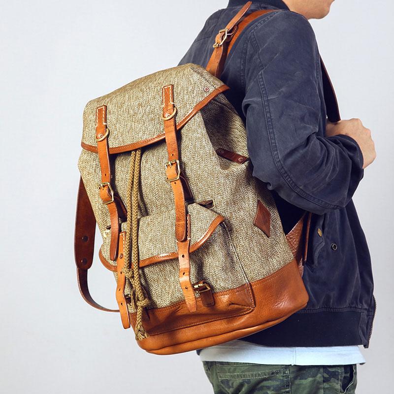 Style: Handmade Leather Canvas Mens Cool Backpack Sling Bag Large Travel Bag Hiking Bag for Men
