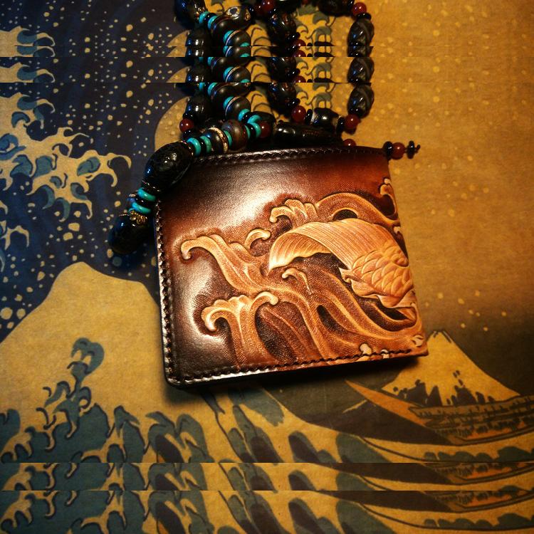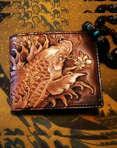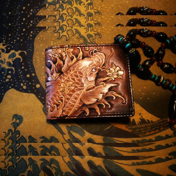 Style: Handmade Leather Carp Fish Tooled Mens billfold Wallet Cool Leather Wallet Slim Wallet for Men