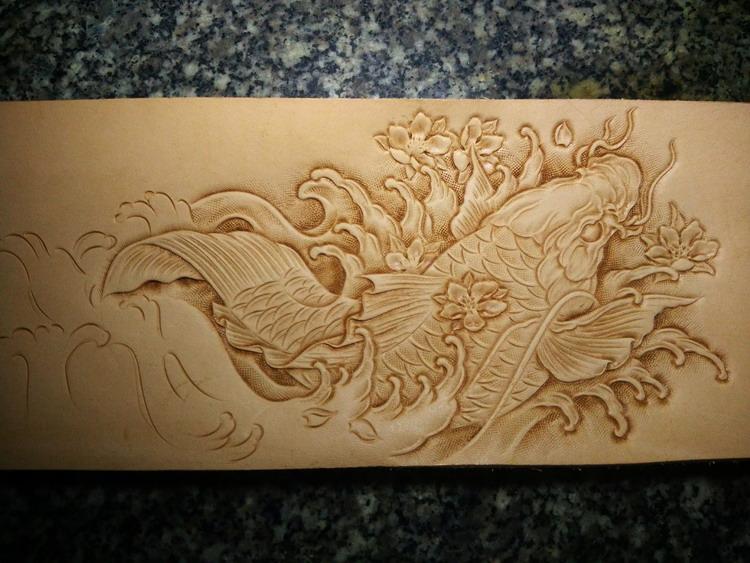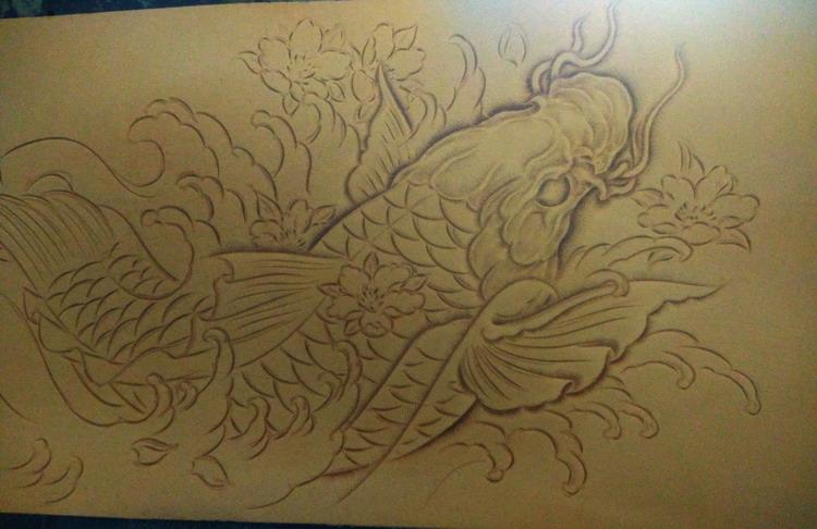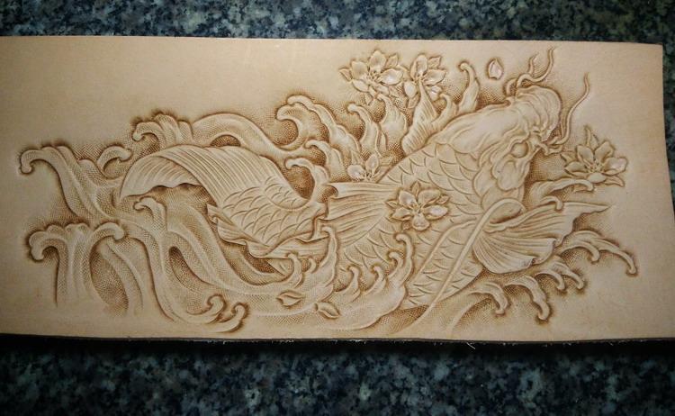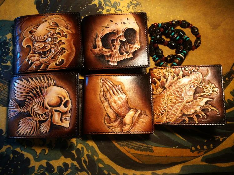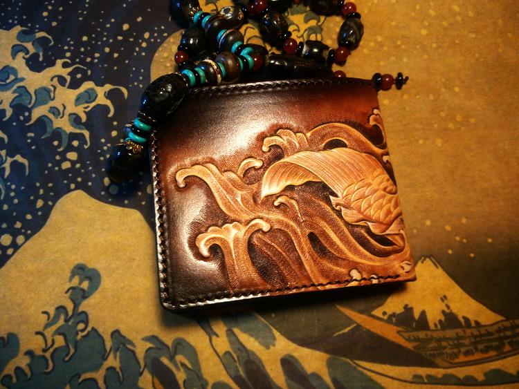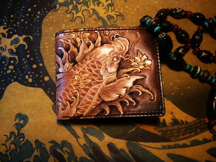 Design: Handmade Leather Carp Fish Tooled Mens billfold Wallet Cool Leather Wallet Slim Wallet for Men
