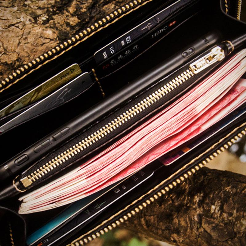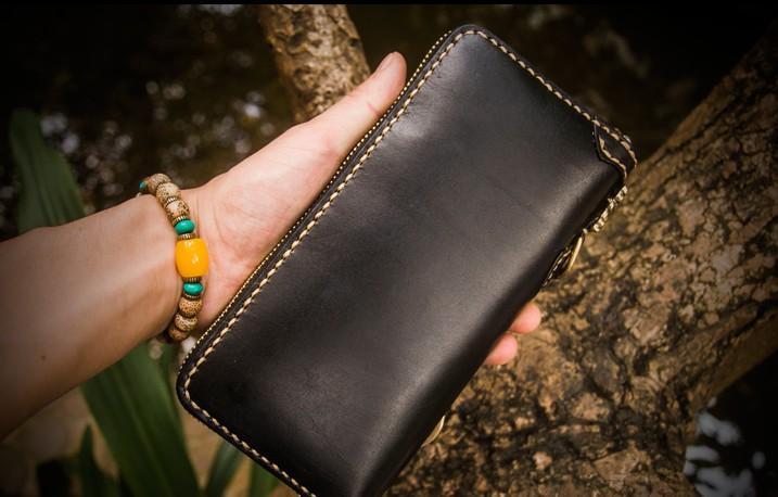 Style: Handmade Leather Carp Mens Chain Biker Wallet Cool Leather Wallet Long Phone Wallets for Men
