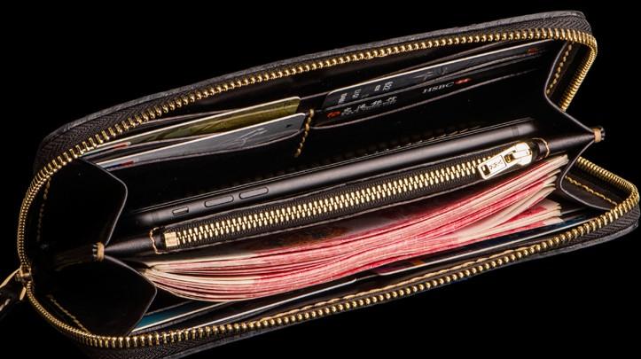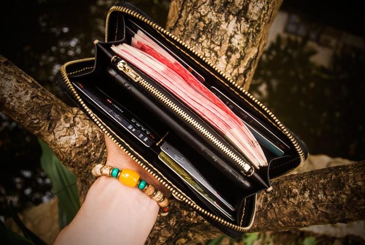 Slots: 2 full size bill slot, 12 card holders, 1 zipper slot