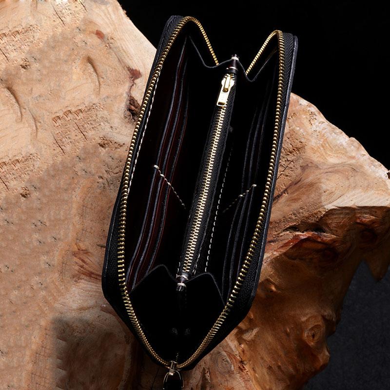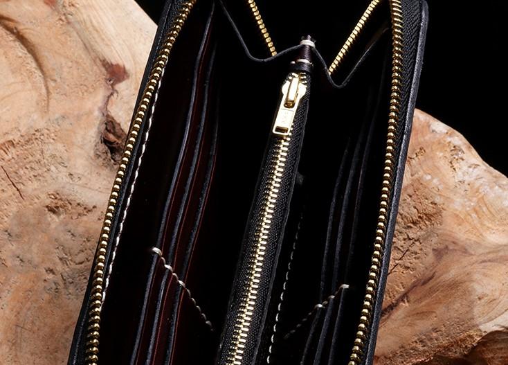Slots: 2 full size bill slot, 12 card holders, 1 zipper slot