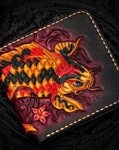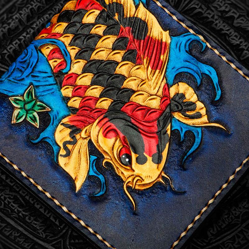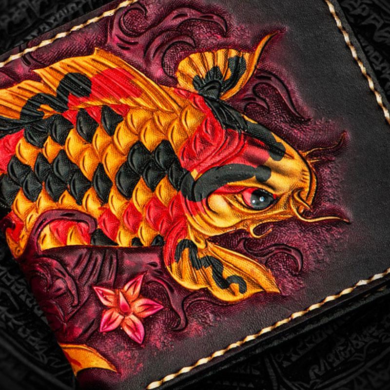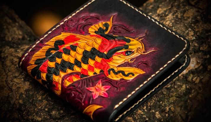 Style: Handmade Leather Carp Tooled Mens billfold Wallet Cool Leather Wallet Slim Wallet for Men