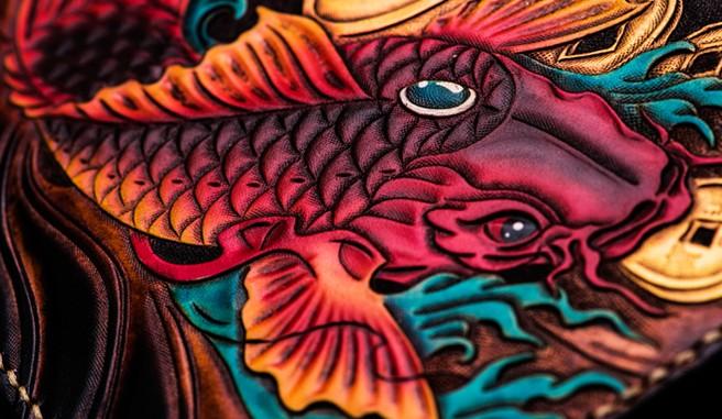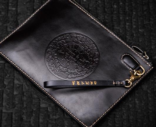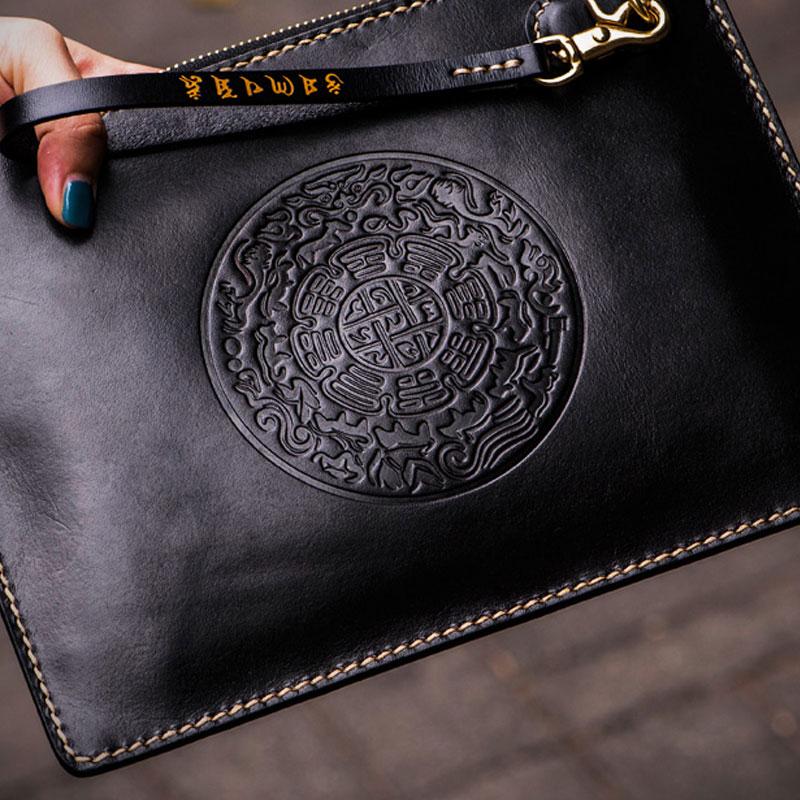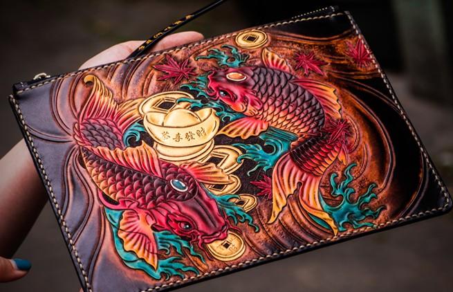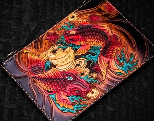 Design: Handmade Leather Carp Tooled Wristlet Bag iPad Bag Mens Cool Leather Wallet Long Clutch for Men