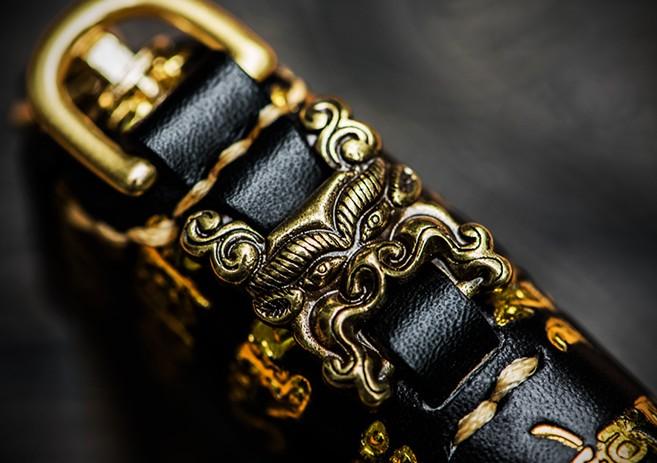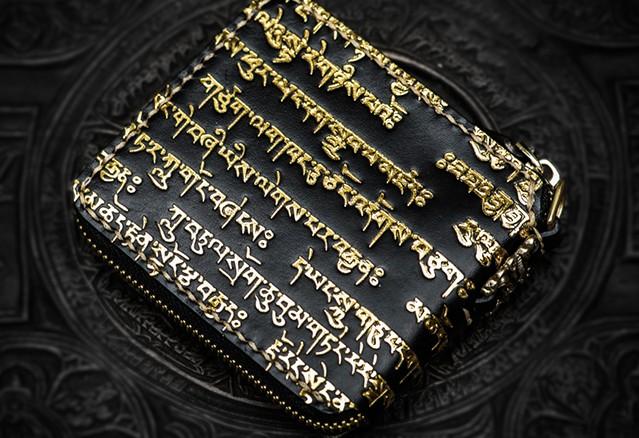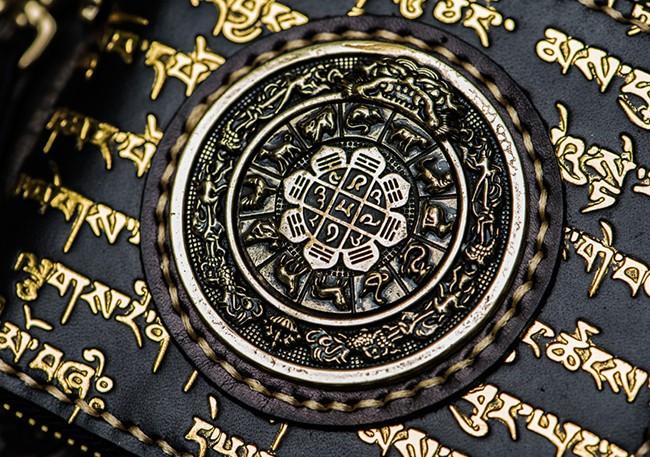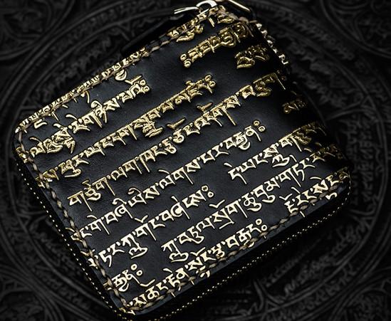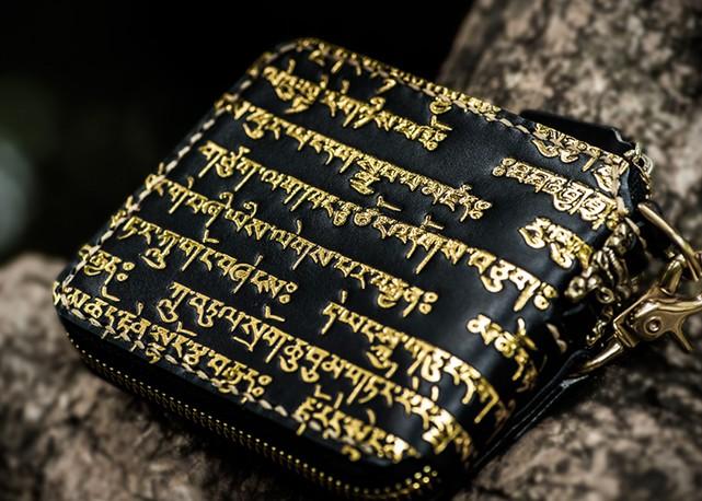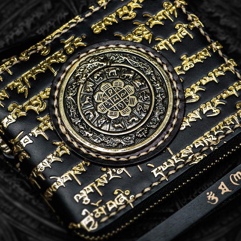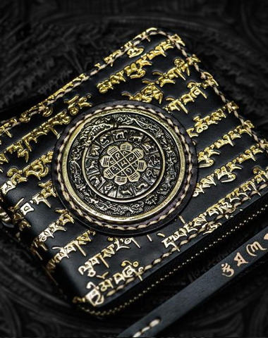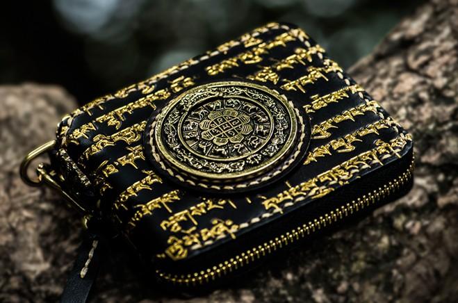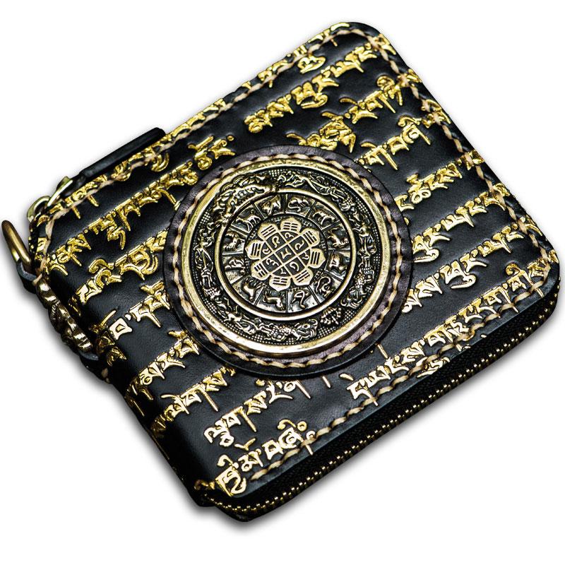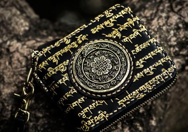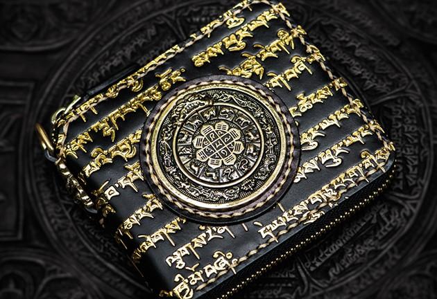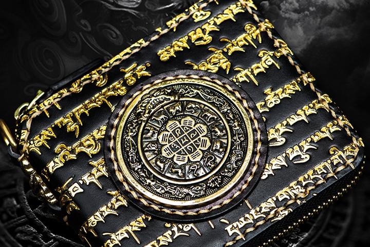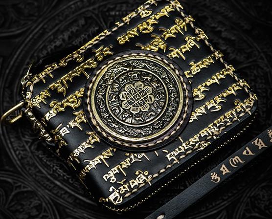 Style: Handmade Leather Chain Wallet Tooled Tibetan Biker Wallet Mens Cool billfold Trucker Wallet with Chain