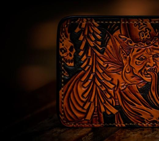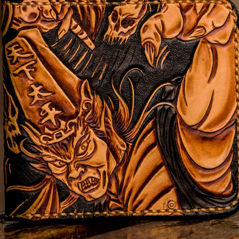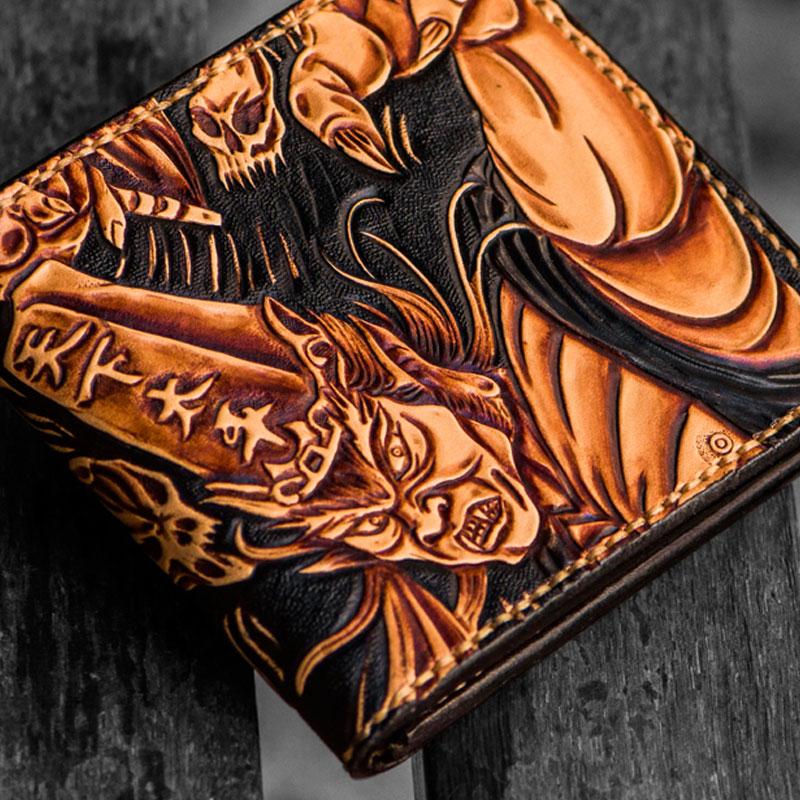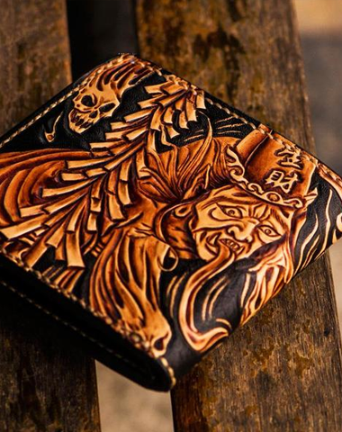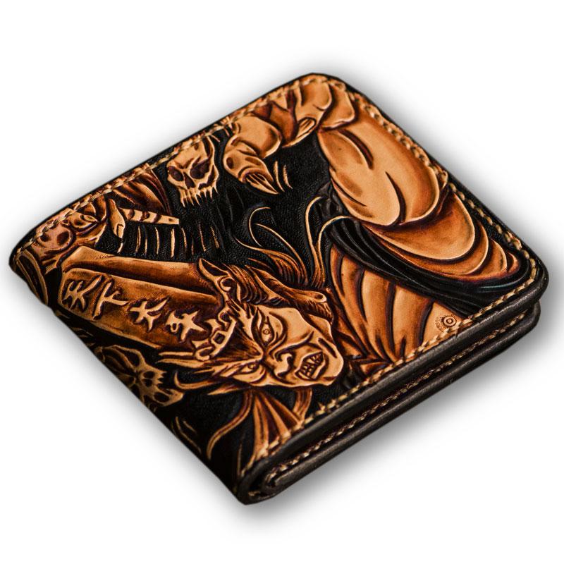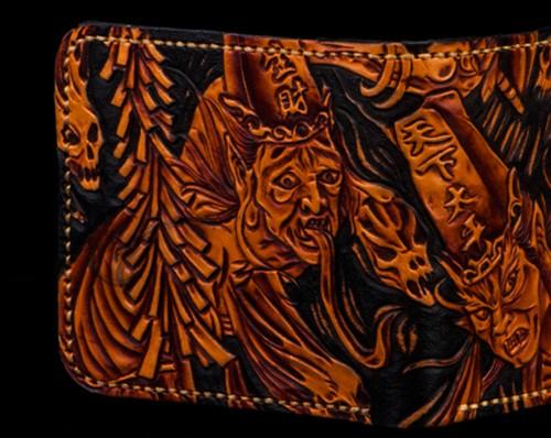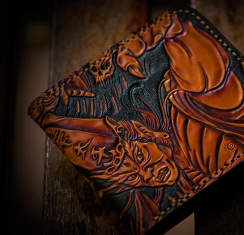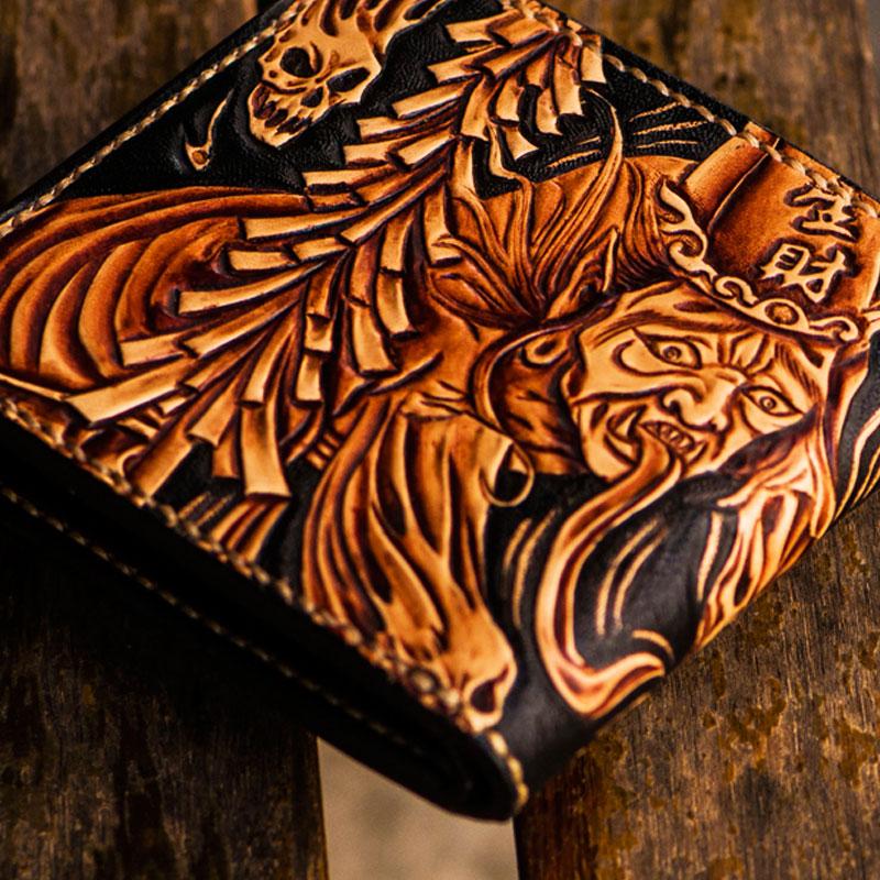 Design: Handmade Leather Chinese Black&White Tooled Mens billfold Wallet Cool Leather Wallet Slim Wallet for Men