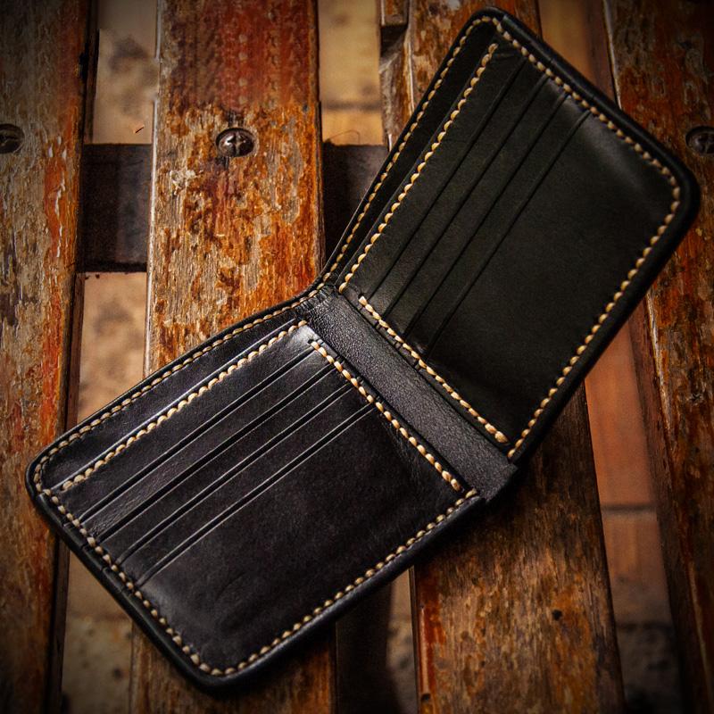 Style: Handmade Leather Chinese Black&White Tooled Mens billfold Wallet Cool Leather Wallet Slim Wallet for Men