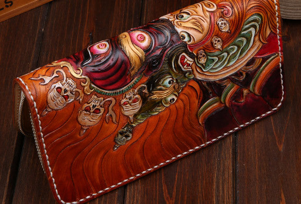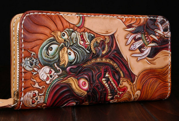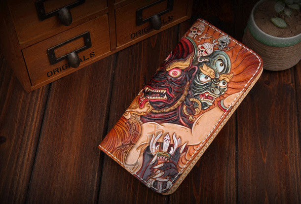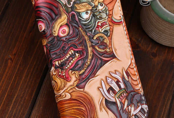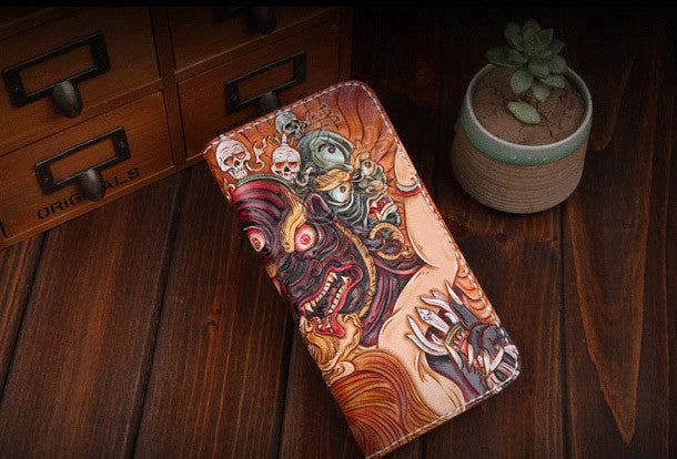 Design: Black Carved Tooled devil ?Long?Leather Wallet