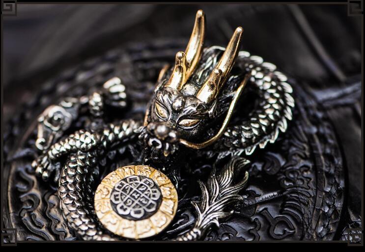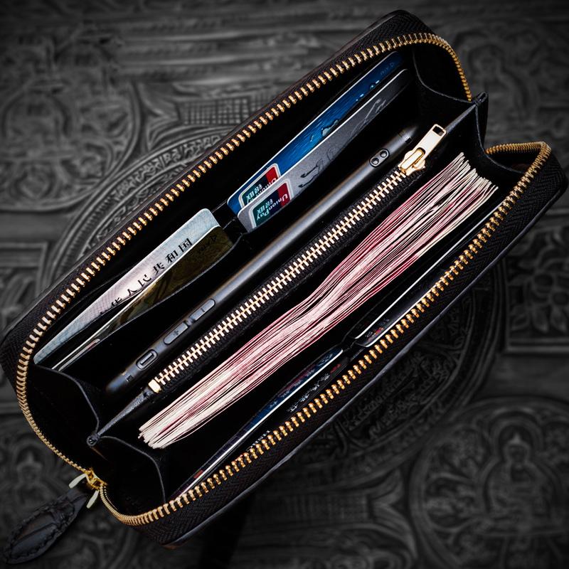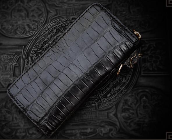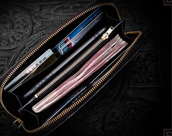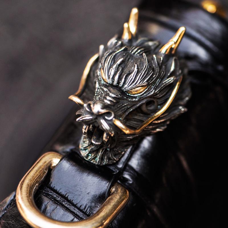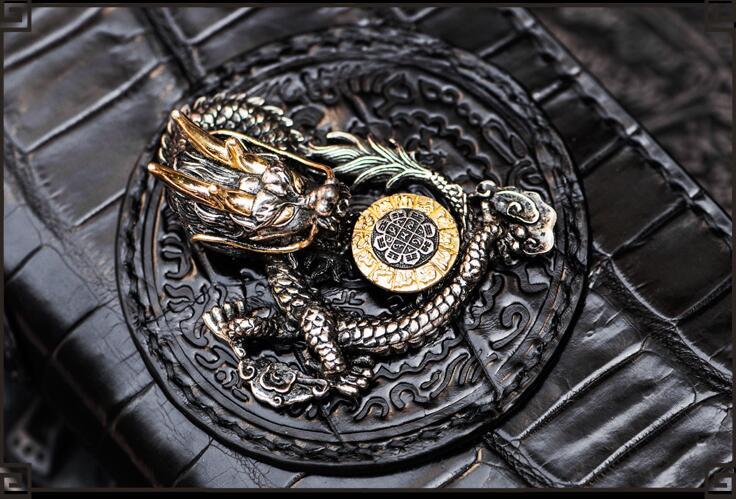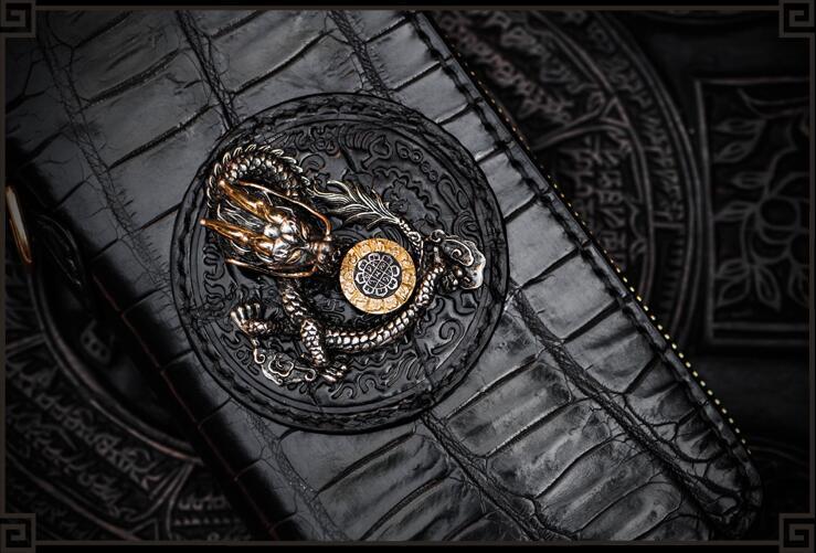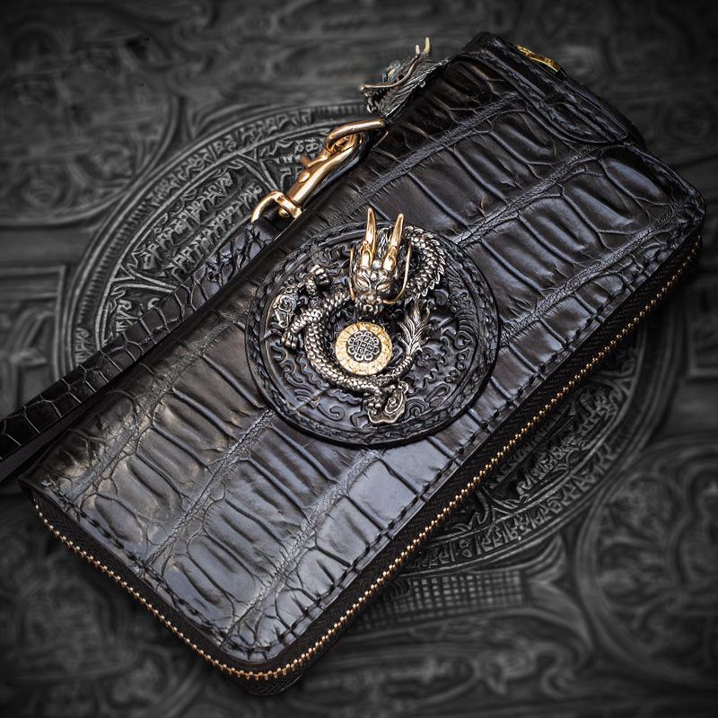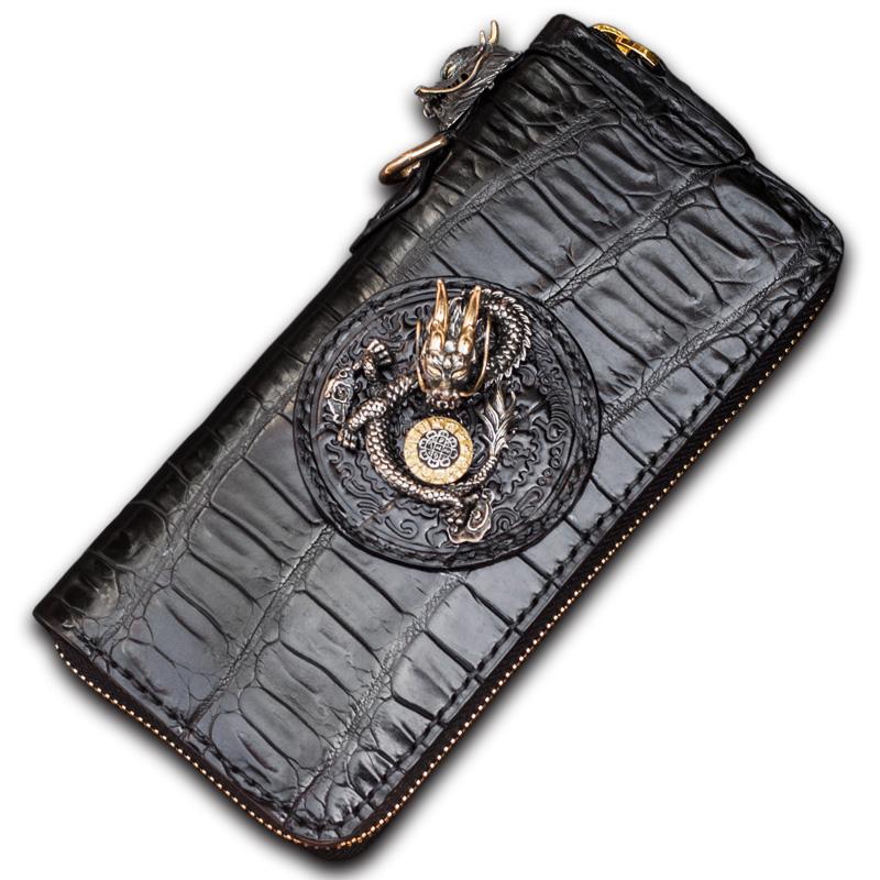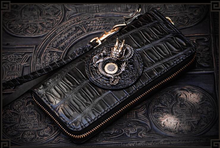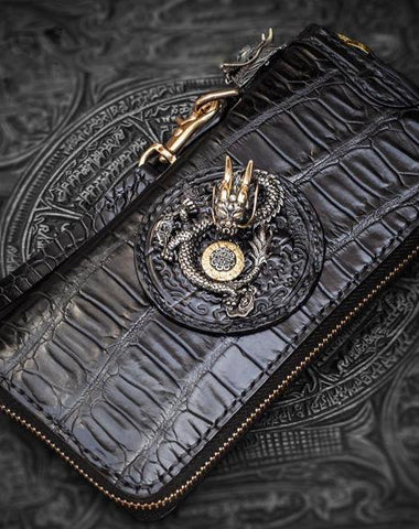 Design: Handmade Leather Chinese Dragon Mens Chain Biker Wallet Cool Leather Wallet Long Clutch Wallets for Men