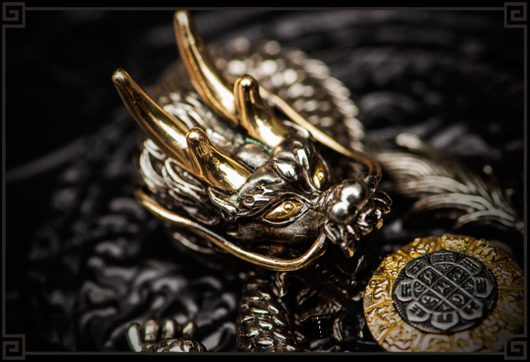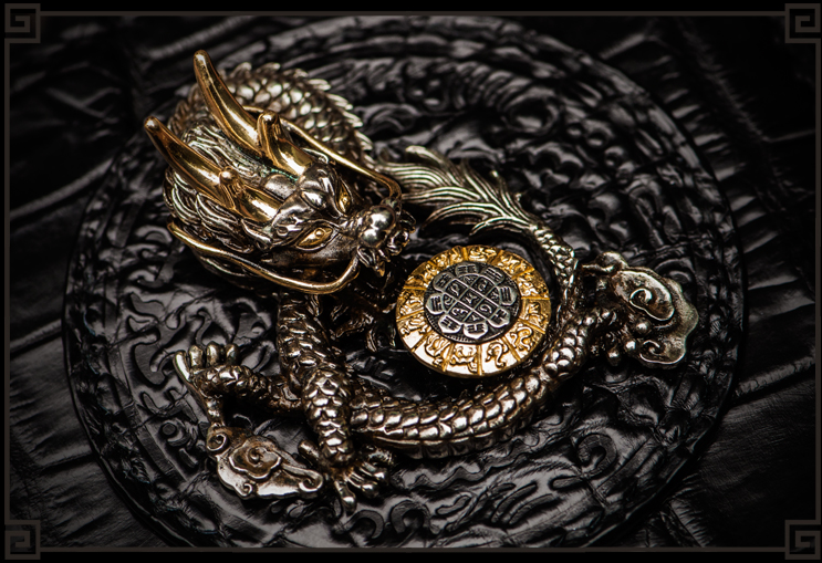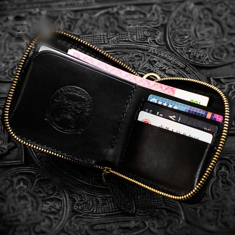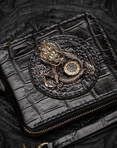 Design:Handmade Leather Chinese Dragon Tooled Mens billfold Wallet Cool Chain Wallet Biker Wallet for Men