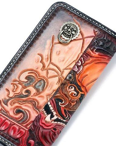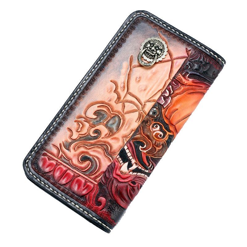 Design: Handmade Leather Chinese Lion Mens Chain Biker Wallet Cool Leather Wallet With Chain Wallets for Men
