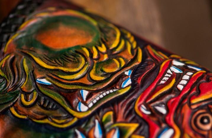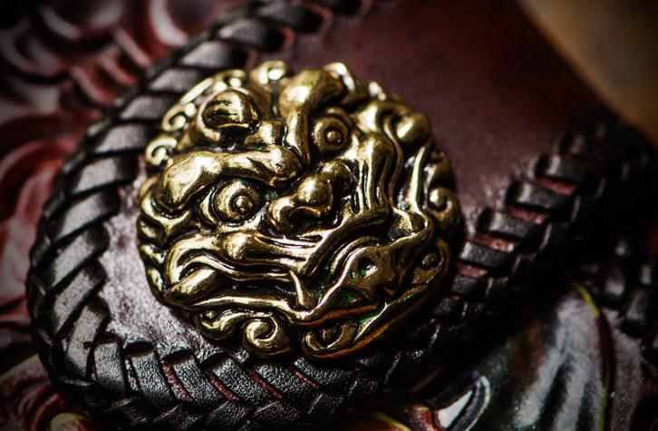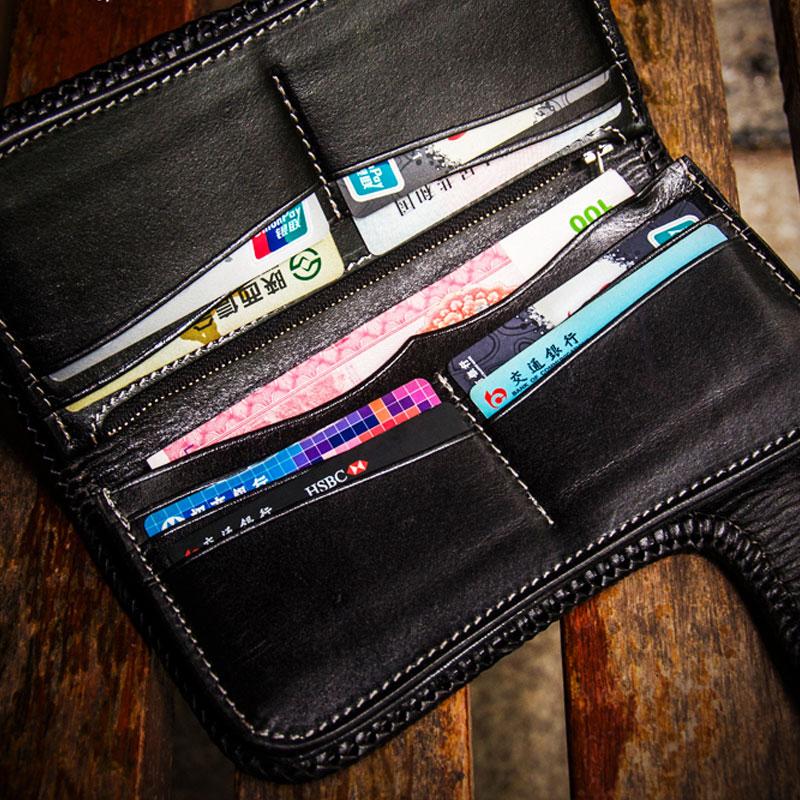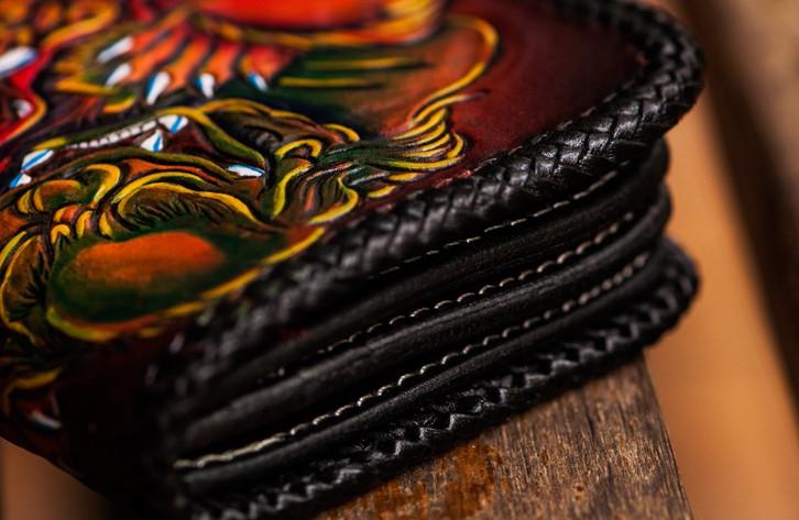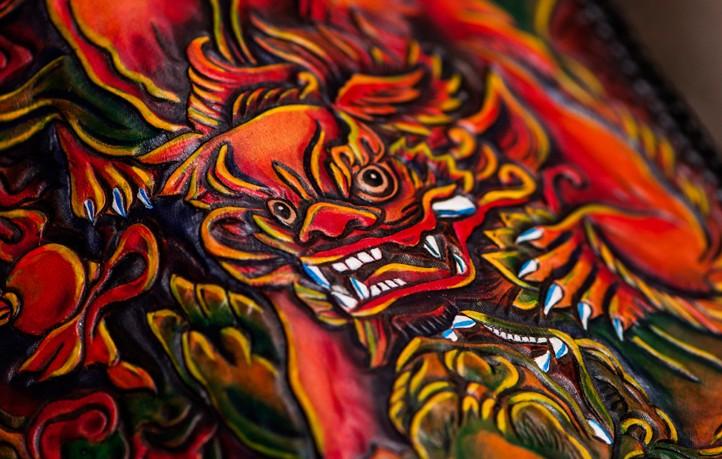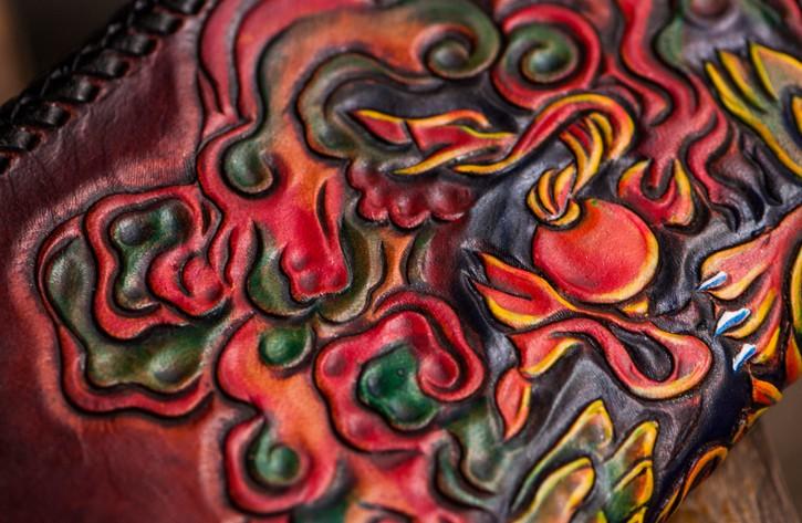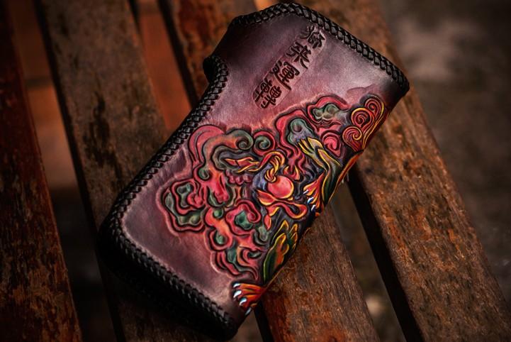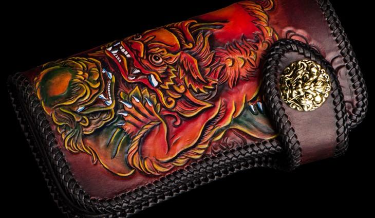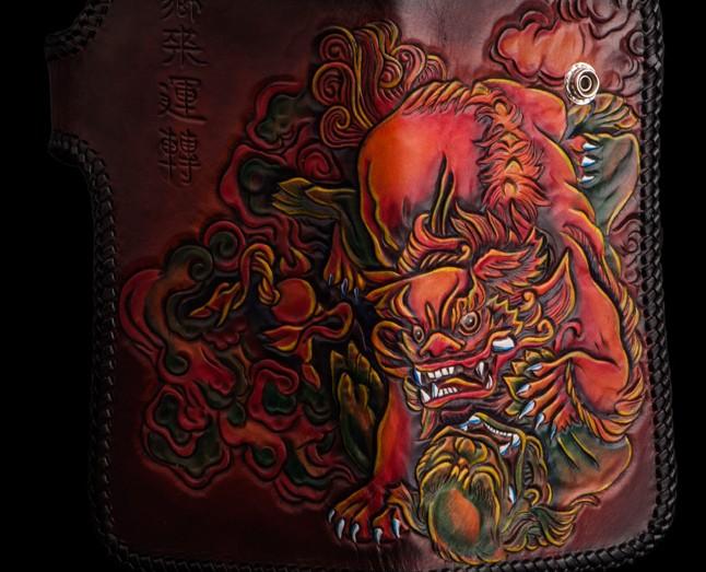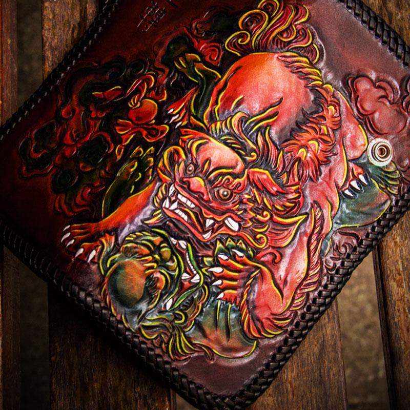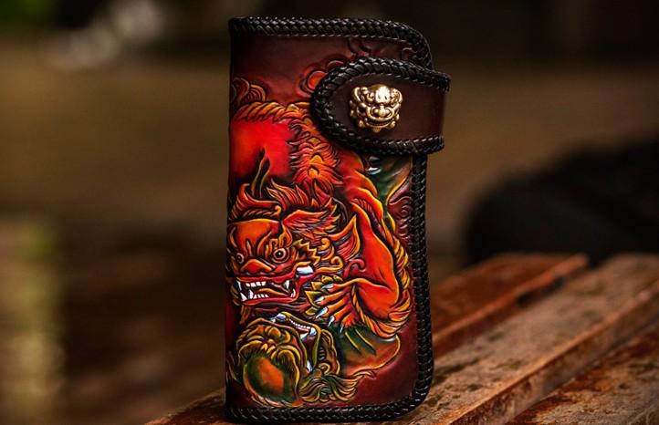 Design: Handmade Leather Chinese Lion Mens Chain Biker Wallet Cool Leather Wallet With Chain Wallets for Men
