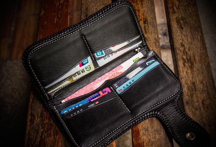 Slots: 2 full size bill slot, 8 card holders, 1 zipper slot