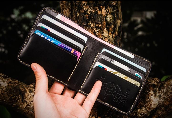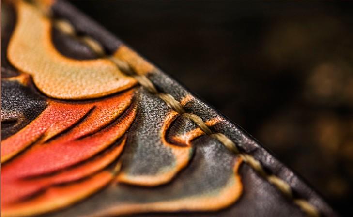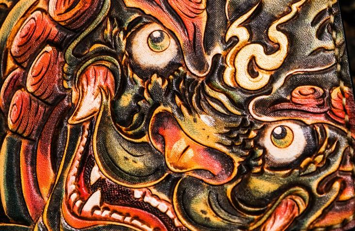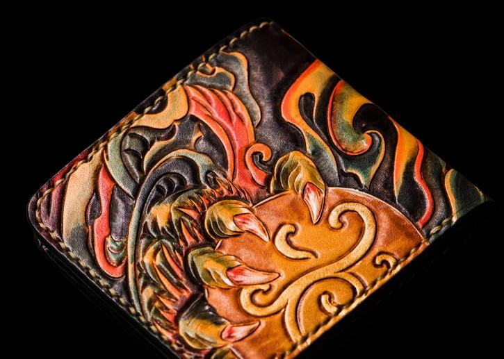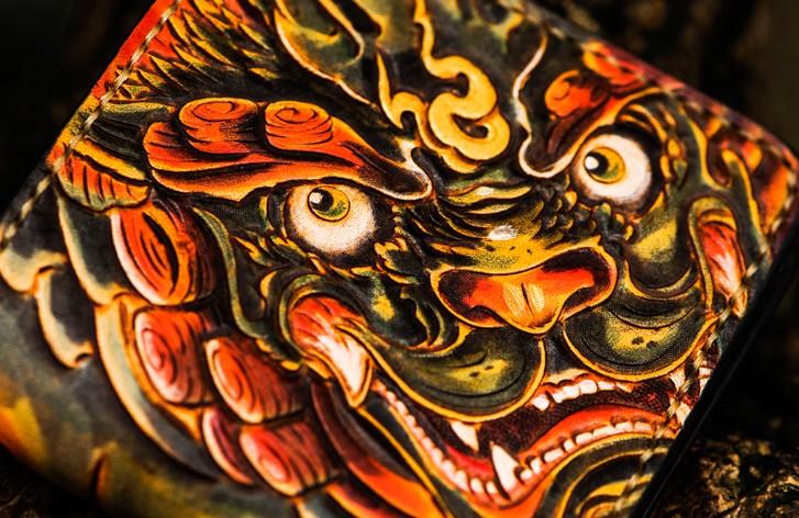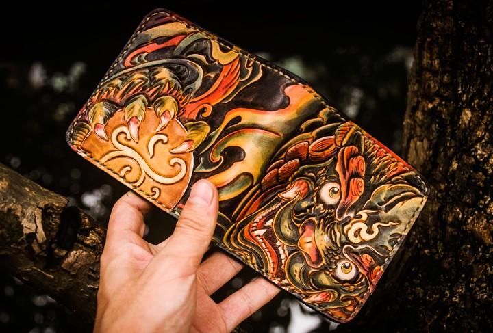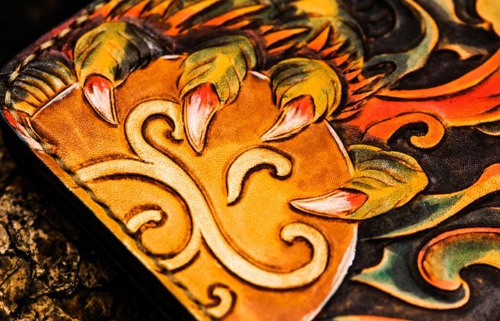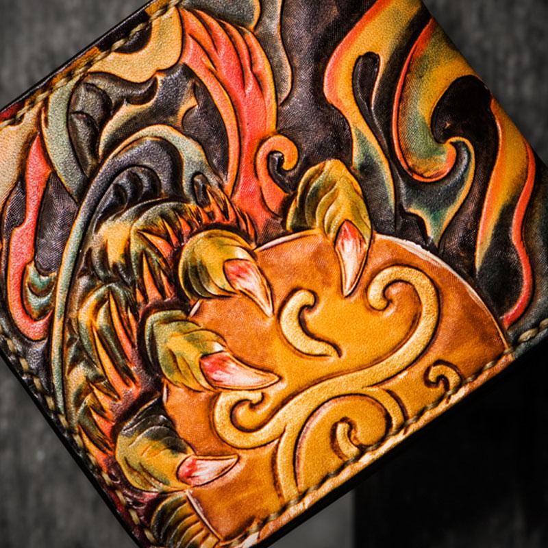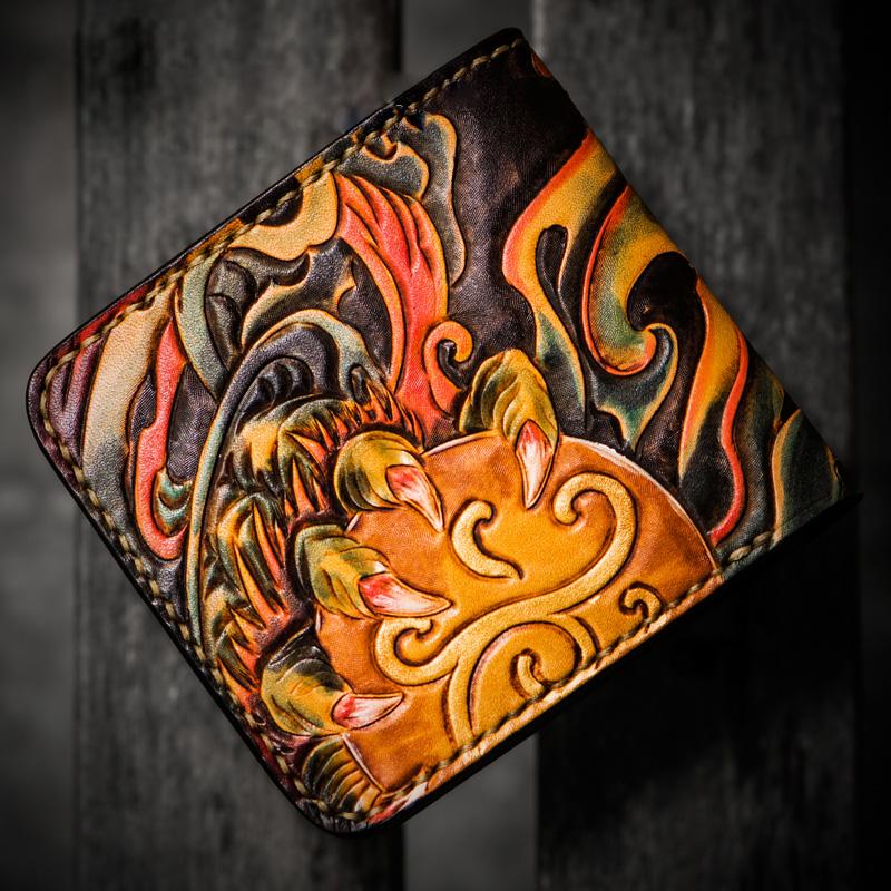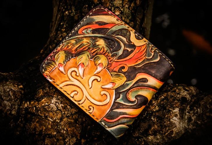 Design: Handmade Leather Chinese Lion Tooled Mens billfold Wallet Cool Leather Wallet Slim Wallet for Men