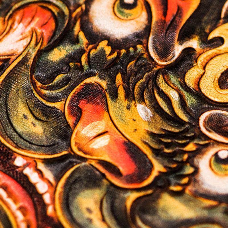 Style: Handmade Leather Chinese Lion Tooled Mens billfold Wallet Cool Leather Wallet Slim Wallet for Men