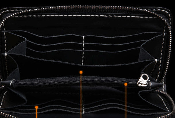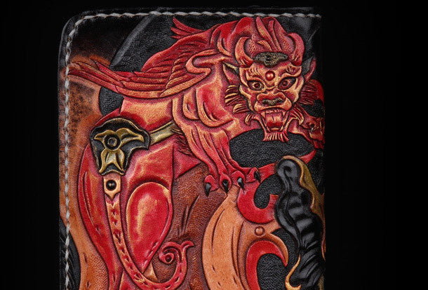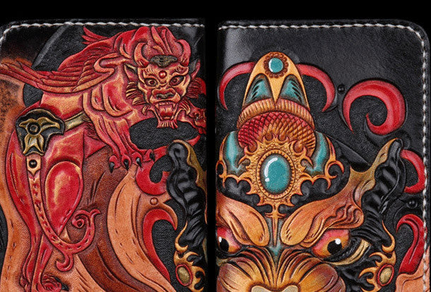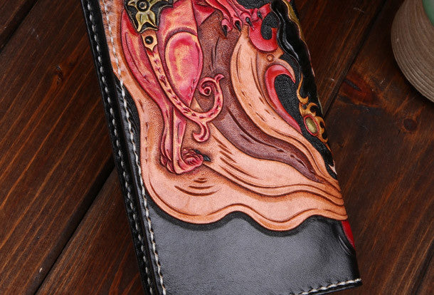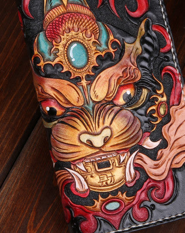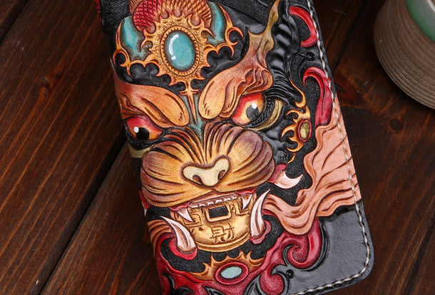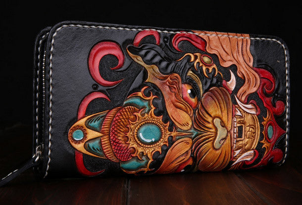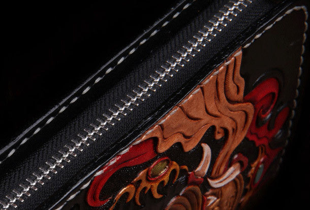 Design: Black Carved Tooled Monster?Long?Leather Wallet