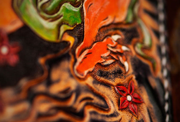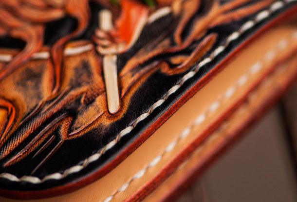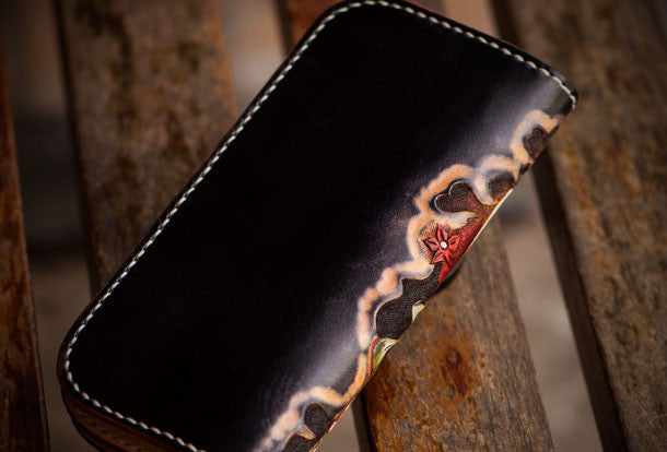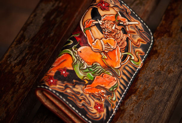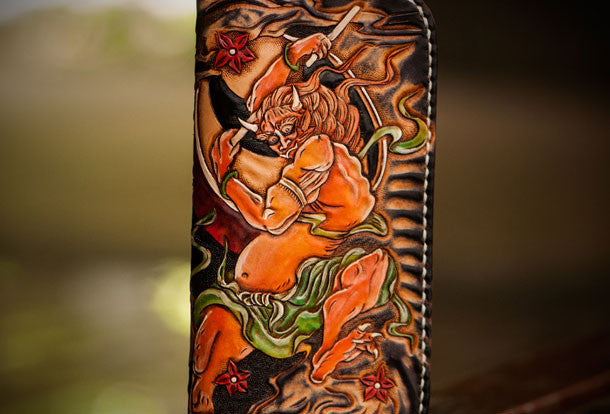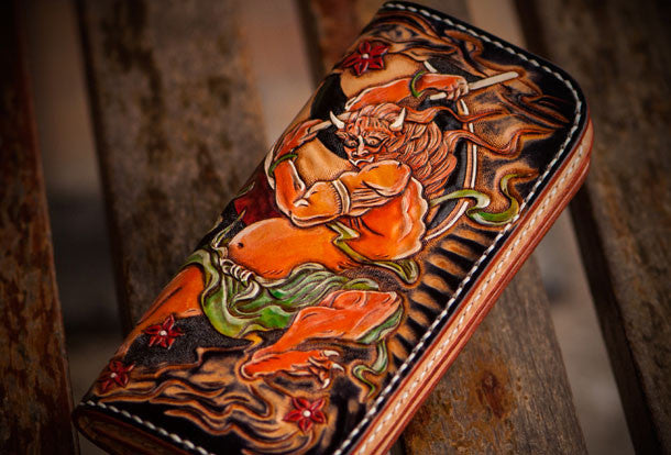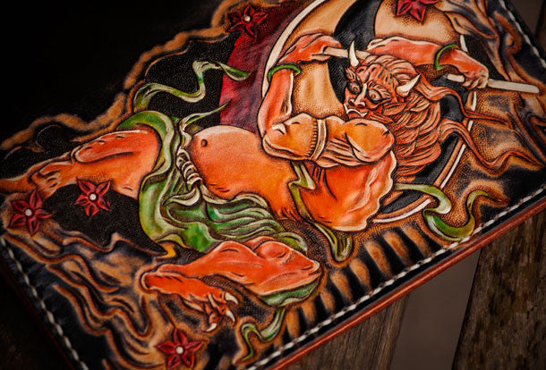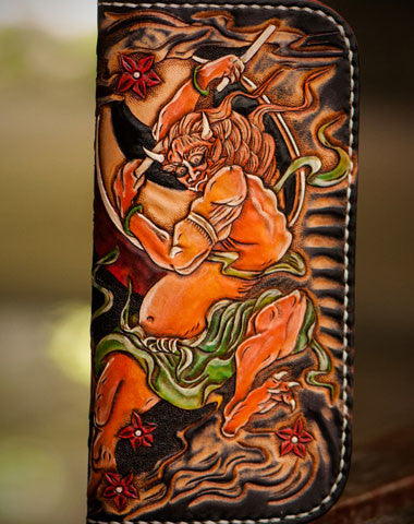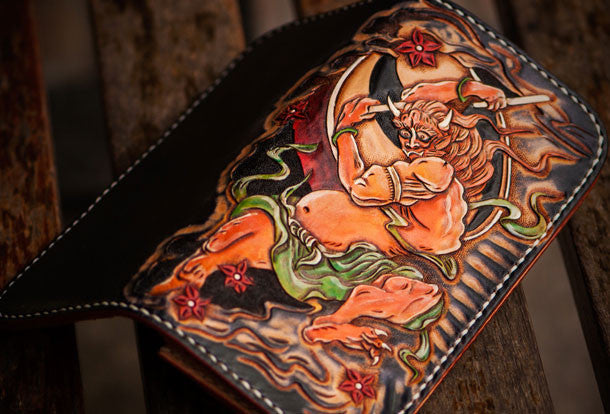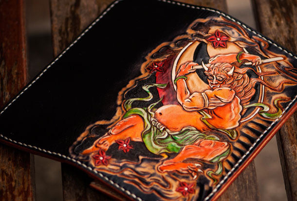 Design: Black Carved Tooled Chinese Taranis?biker Clutch Leather Wallet