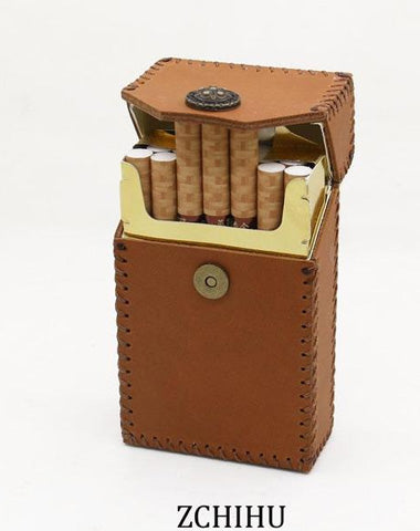Style: Handmade Leather Cigarette Holder Mens Brown Cool Cigarette Holder Case for Men